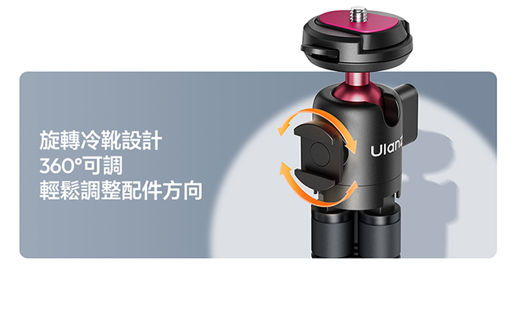 • 可旋轉冷靴設計:冷靴角度可調整,方便外接補光燈、麥克風,創作更專業