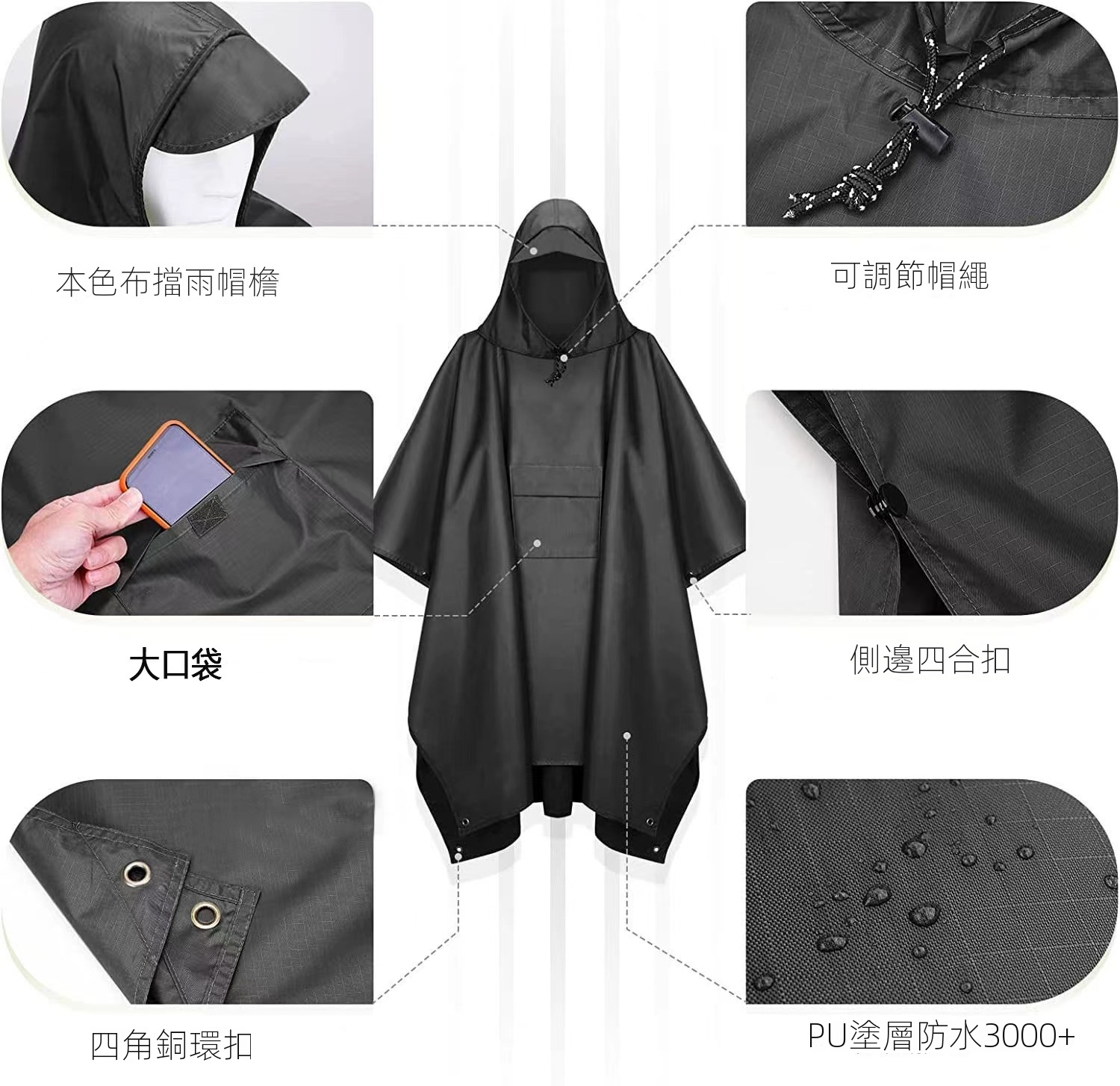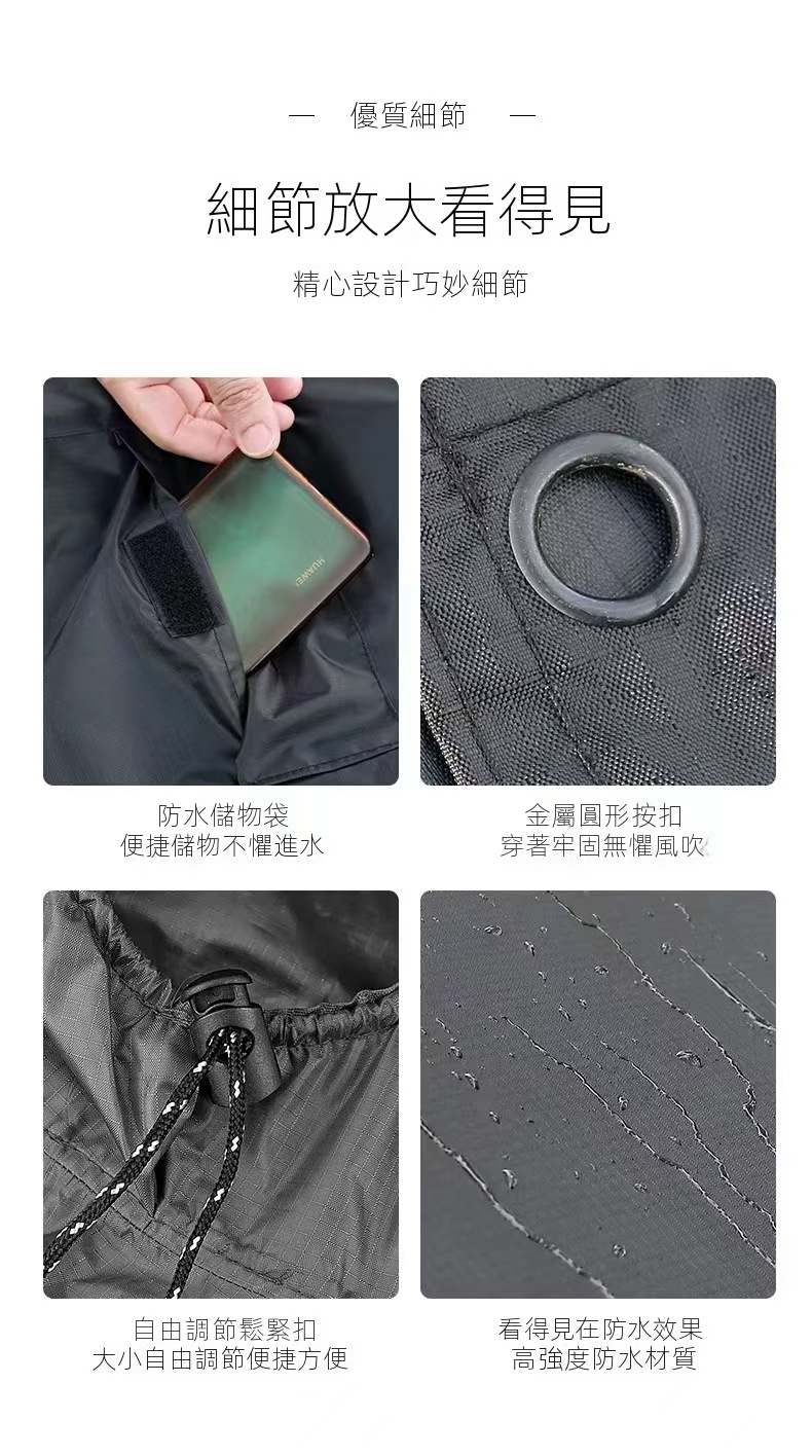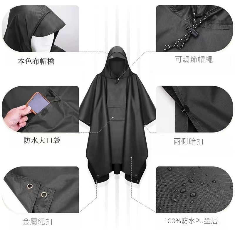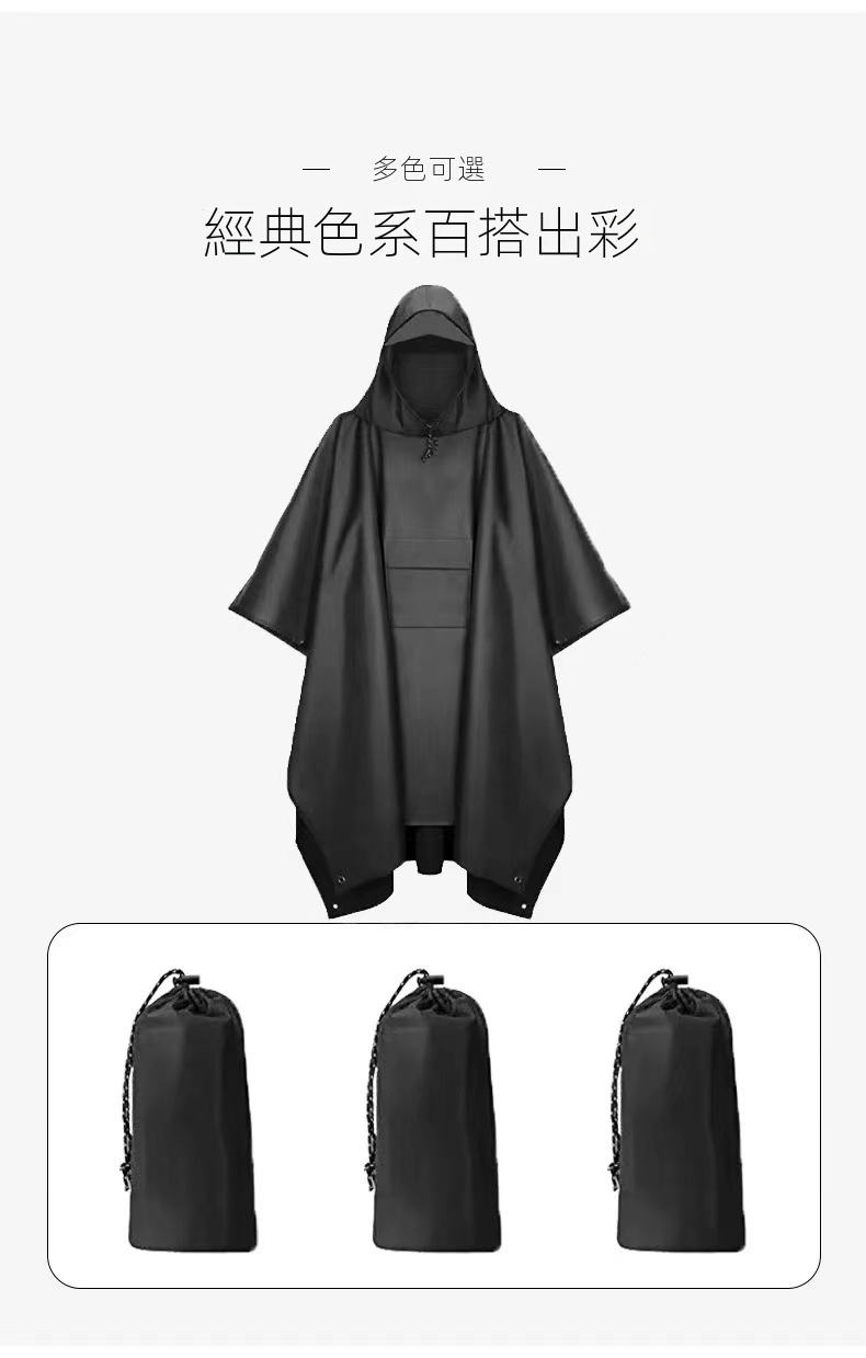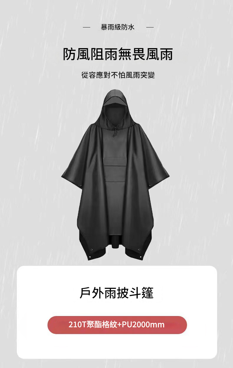 這款便攜式斗篷雨衣,擁有強大戶外防水功能,讓你盡享美好時光。其具備可調節帽檐與側邊四合扣,搭配3000+ PU塗層防水,細節處如銅環扣、防水儲物袋等皆精心設計,確保使用便捷且牢固。多色可選,經典百搭。不僅可作為雨衣,鋪開還能當地墊使用。收納小巧,自帶兩用收納包,穿著時可做儲物袋,方便實用。無論是郊遊還是看比賽,都不懼風吹雨打,是你的理想選擇。