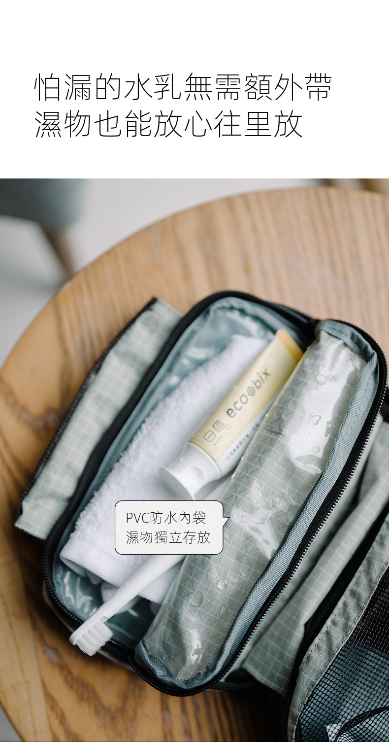NatureHike SN03 旅行洗漱包,材質為100%聚醯胺纖維及PVC網布,輕巧便攜。獨特的透視小口袋和豎插式設計,讓小物件分類收納一目了然,拿取更方便。半透主倉可容納大瓶洗護用品,PVC防水內袋則確保濕物獨立存放,避免滲漏。加寬手提織帶設計,可拎可掛,舒適不勒手。這款洗漱包讓您的出行更加有條不紊、井然有序。