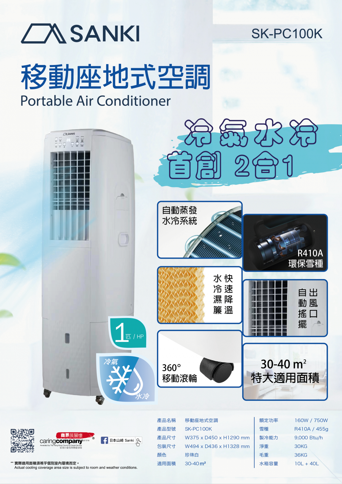 • 產品型號:SANKI SK-PC100K 移動冷氣機