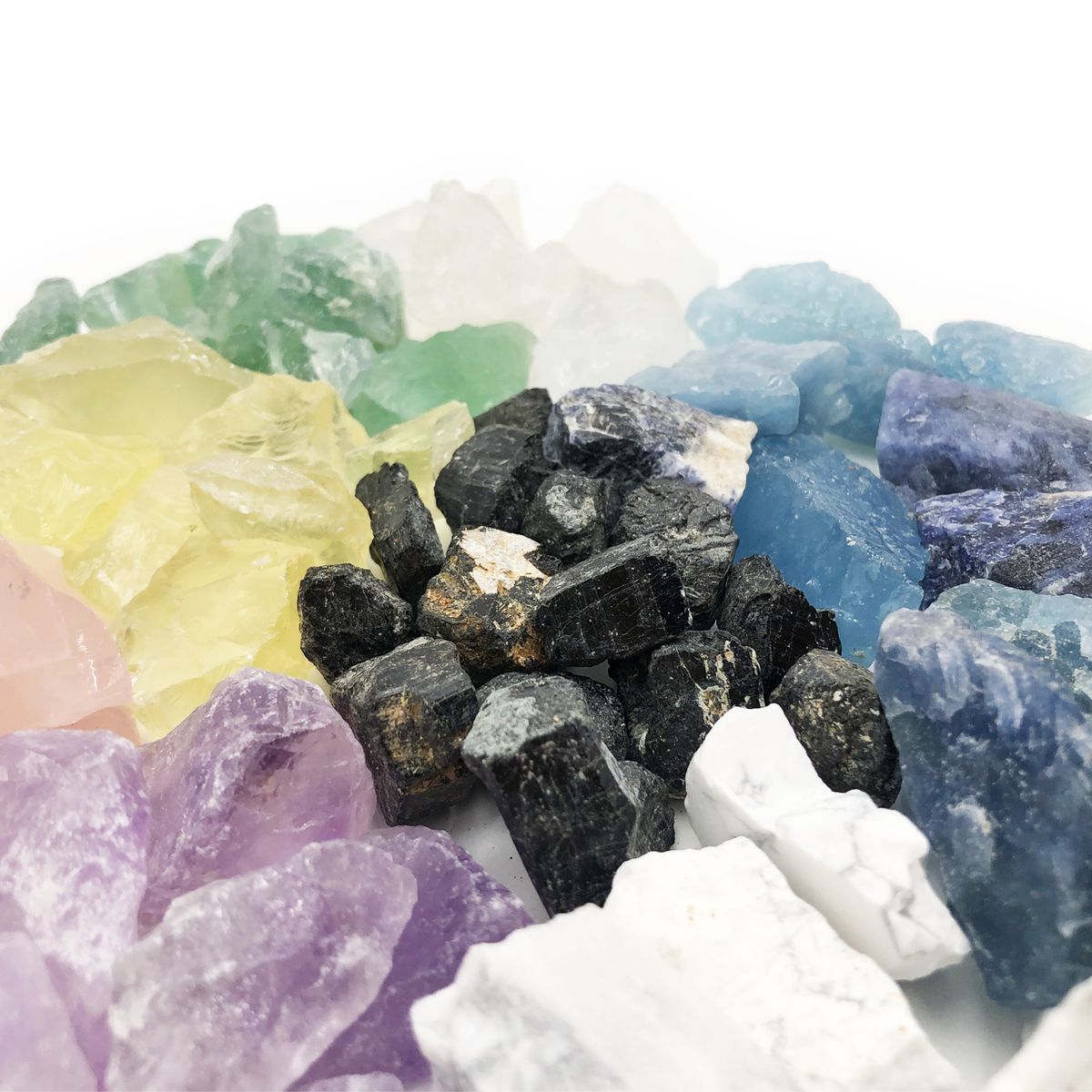 • 未經處理的水晶原石未經拋光,它們的大小結構都各有不同。通常原石會比經過滾磨的原石更易碎。一些治療師認為,原石沒有經過人工處理化,所以能夠散發出更強烈、更純淨的能量。原石具有粗糙的紋理和邊緣、標記、顏色。許多能量治療師和水晶愛好者都認為原石有具大的治療功效,這些未經加工的原石是與大自然連結,並與地球能量產生共鳴的絕佳工具。岩石的形態越自然,其能量就越純淨。