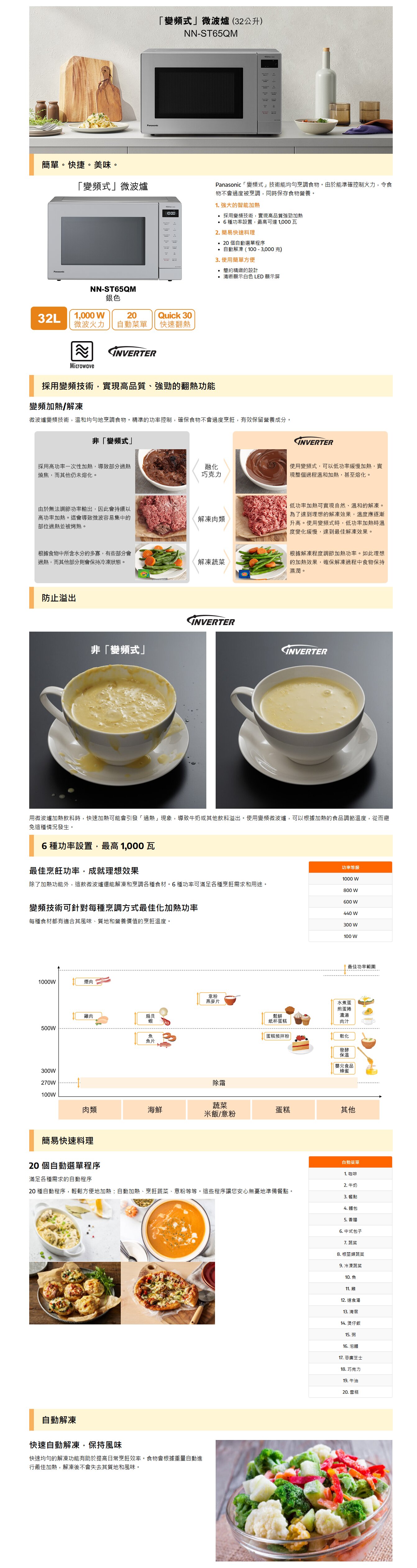 Buy Panasonic 樂聲 NN-ST65QM 32公升變頻式微波爐 | 1,000W 變頻加熱 | 超速解凍 | 20款內置自動食譜 | 香港行貨 price in outletexpress .com Hong Kong.In promotion and sale.