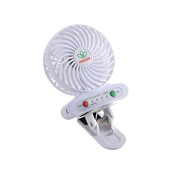 HADATA F95E 便攜式帶底夾手持芭蕉扇 - 白色 | 3檔風速 | 5cm夾距 | 底夾可拆卸