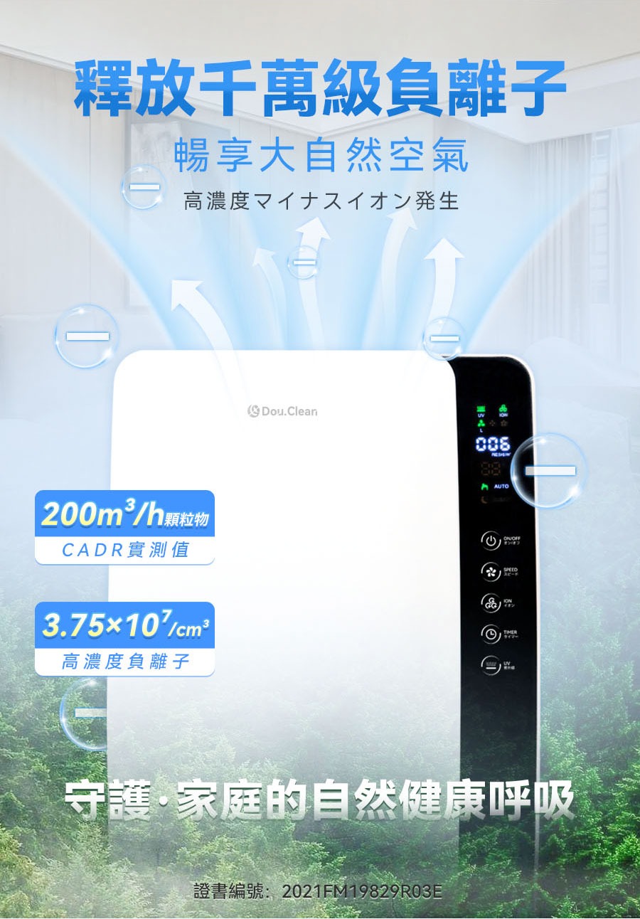 • 負離子濃度:3700萬pcs/cm³