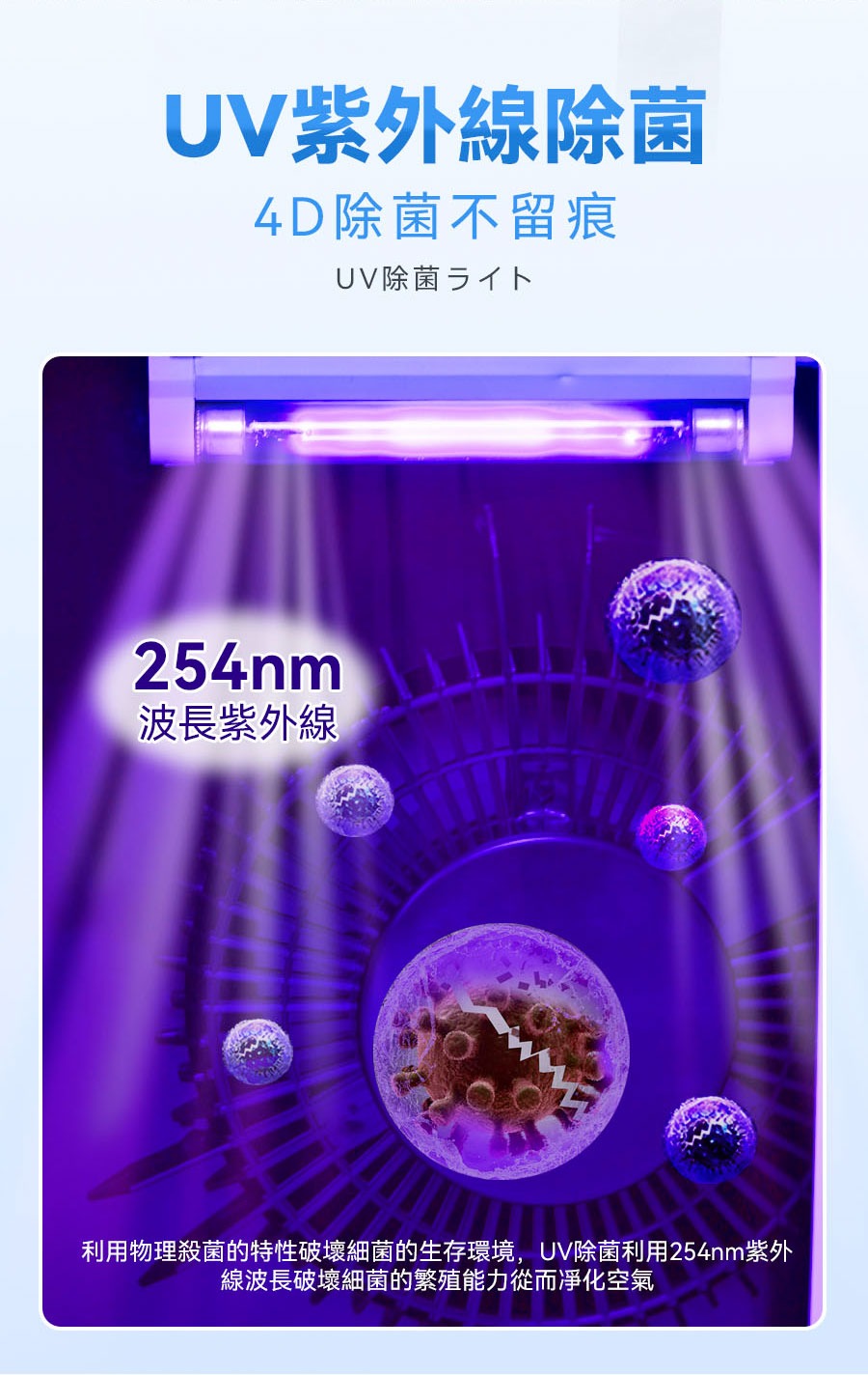• 醫療級UV紫外燈+光觸媒,4D除菌不留痕。內置負離子發生器,清新環境空氣