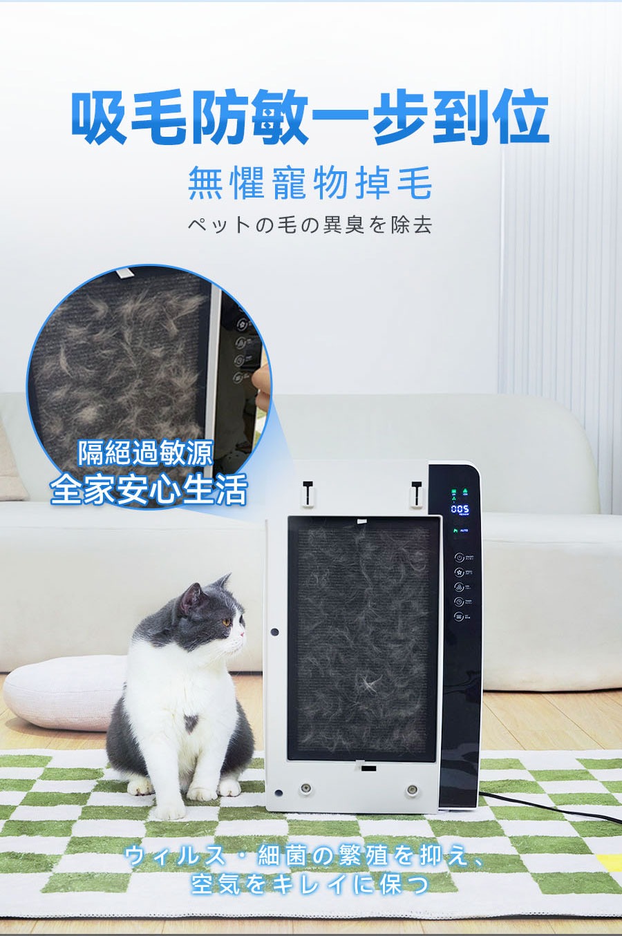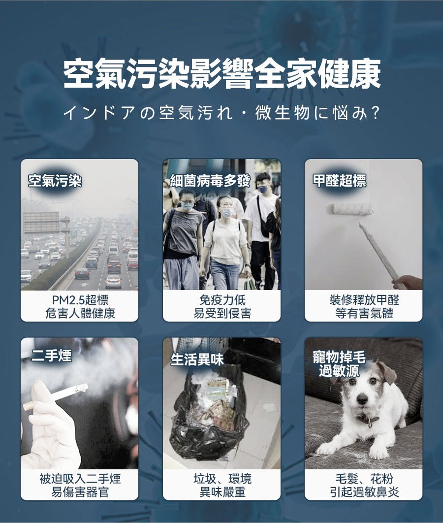 • 超強大風吸力,強效除臭、吸毛、去皮屑,擁有寵物家庭的好幫手