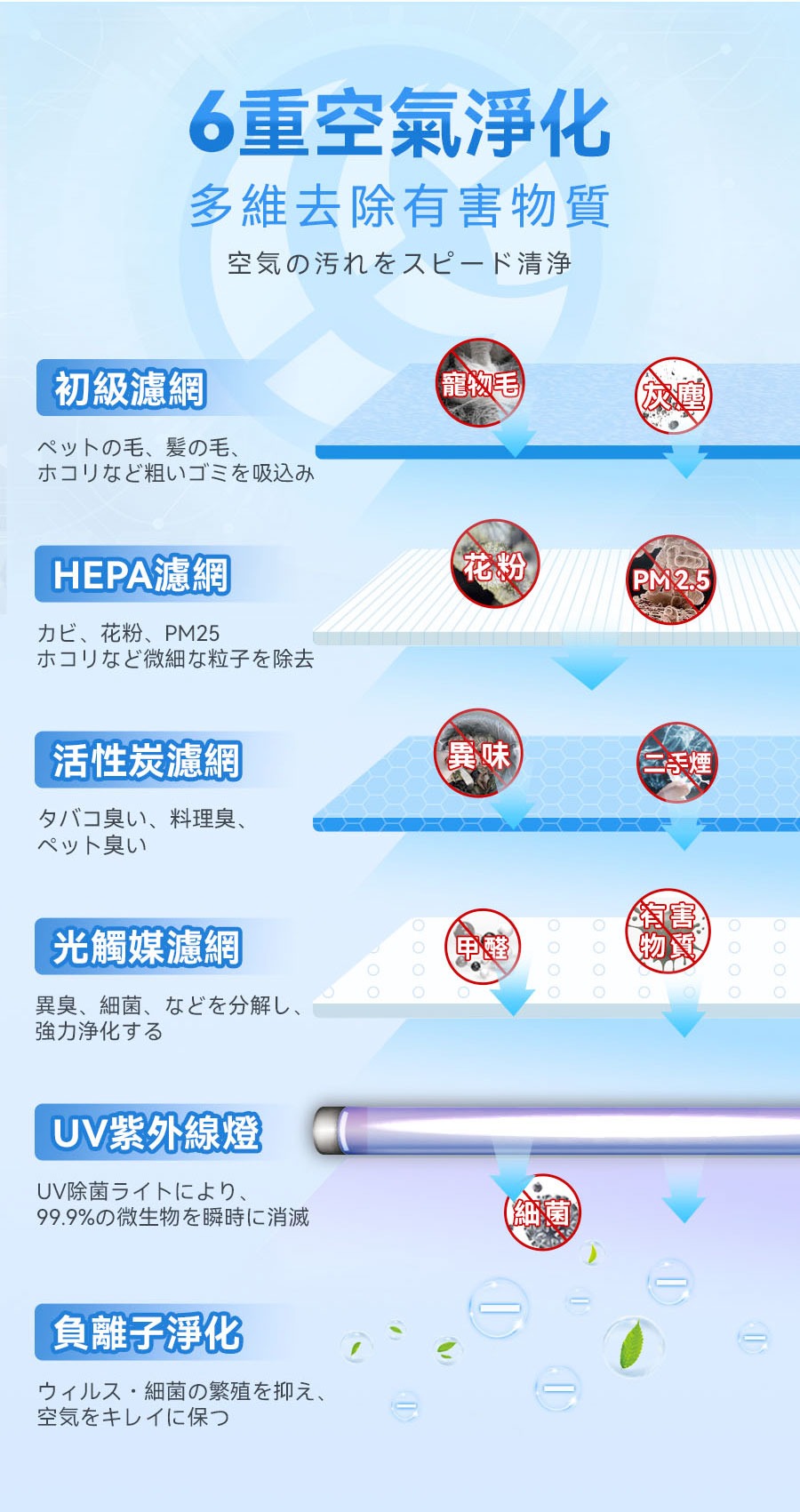• 滅菌系統:UVC+光觸媒+負離子