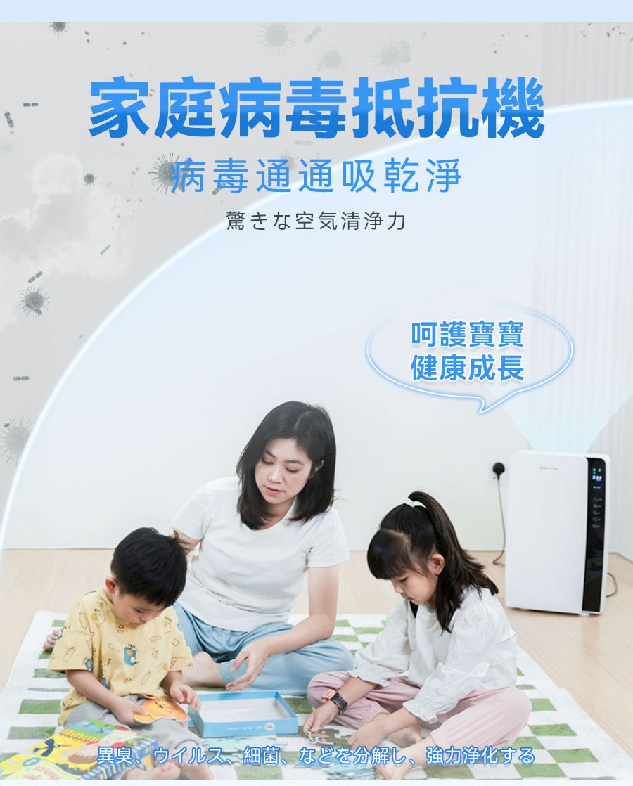 Double Clean 寵物毛微粒吸附空氣極淨機 - 白色 | 四層漸進式濾網 | 醫療級UV紫外燈+光觸媒 | 香港行貨