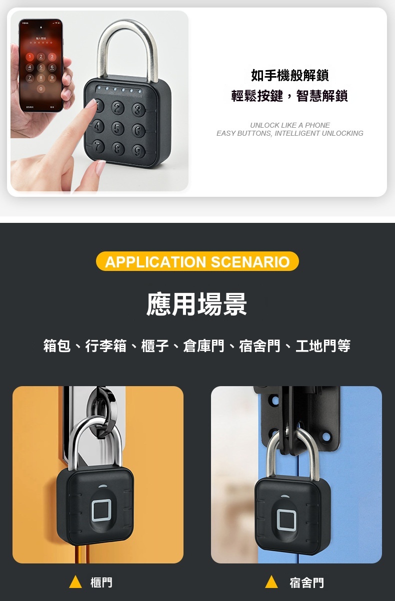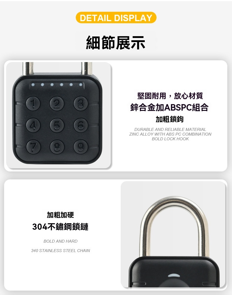 智慧型家用防水密碼按鍵掛鎖 - 密碼按鍵+APP解鎖 | 換電方便 | 續航持久 | 多場景適用
