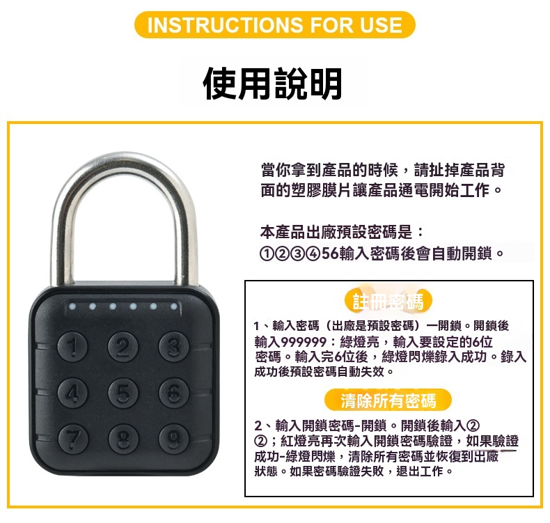 • 強抗破壞結構:採用高強度材質打造鎖體,搭配加粗實心鎖梁,抗剪防撬性能突出,內建優質鎖芯,開啟順暢不易卡頓。