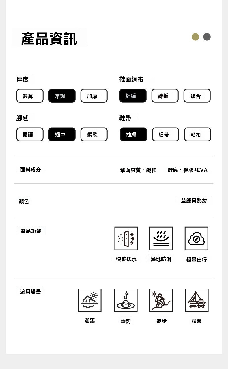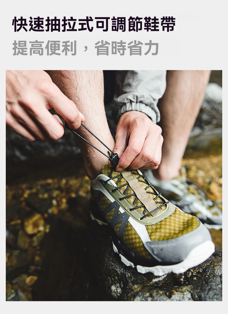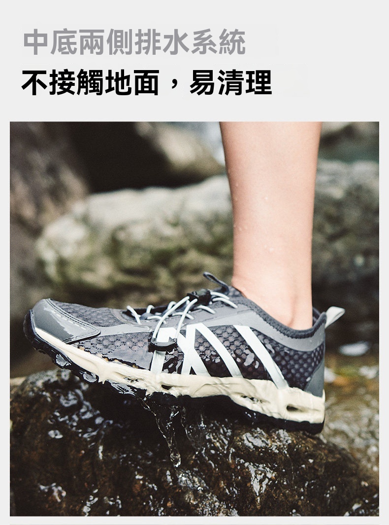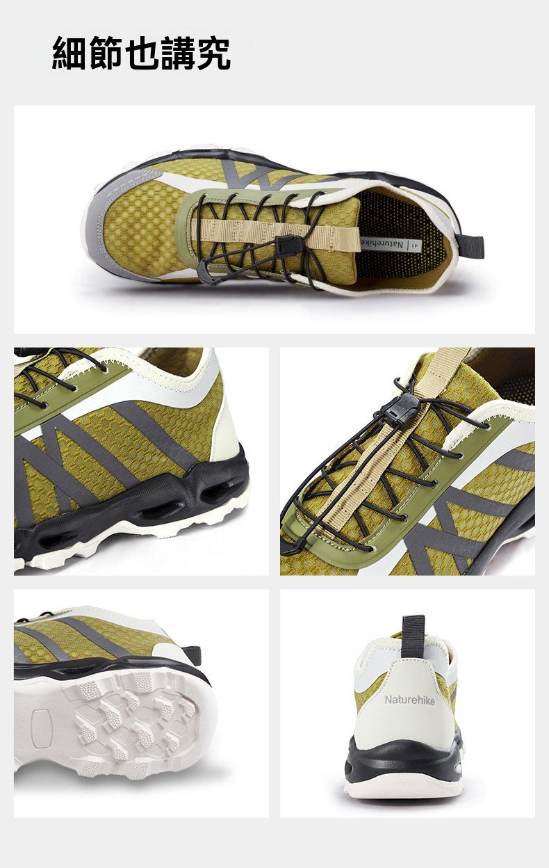 Naturehike 輕量化水陸兩棲專業溯溪鞋專為親水戶外場景設計,以「輕量化、快乾、防滑」為核心。鞋身採用快乾經編網布,配合中底兩側排水結構,迅速排走水分,保持雙腳乾爽透氣。防滑大底提供濕地可靠抓地力,搭配輕量設計,讓你在溯溪、釣魚、健行等多種場景中自如行動,輕鬆回歸自然。