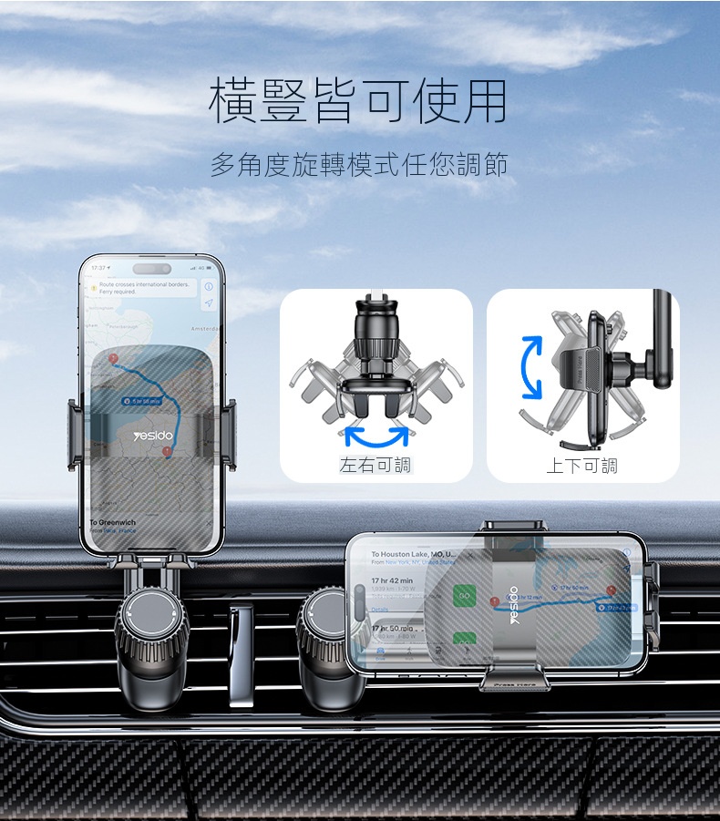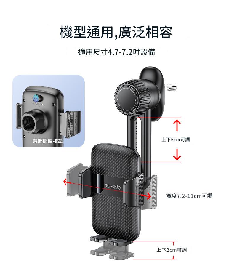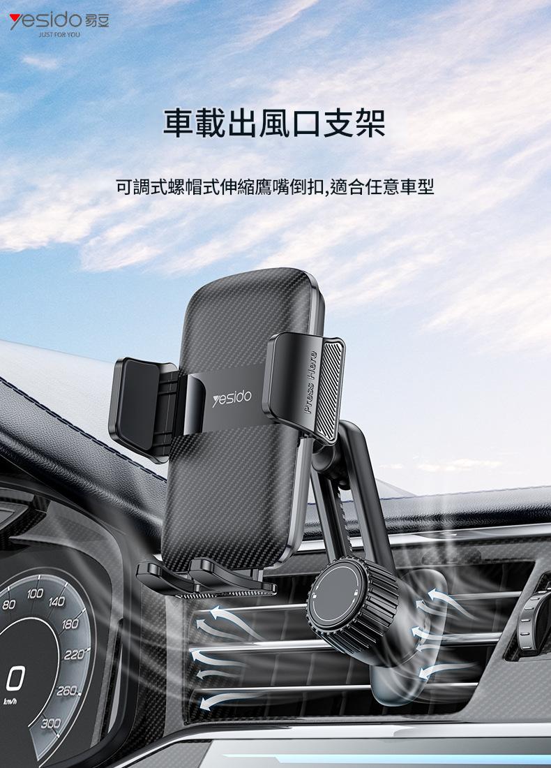 Yesido 易豆 C242 車用出風口手機支架 - 黑色 | 鷹嘴夾倒鉤底座設計 | 橫竪擺放不擋風