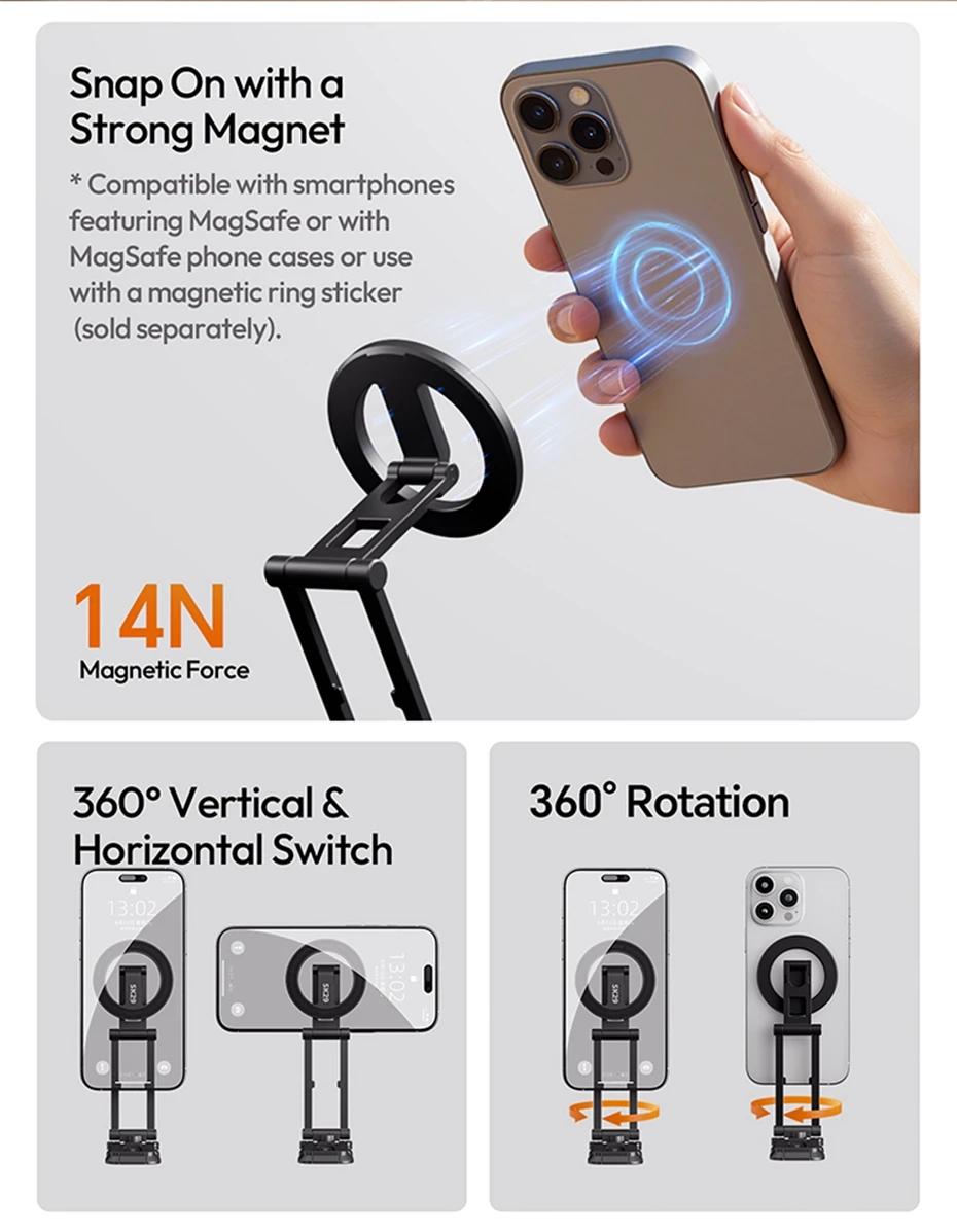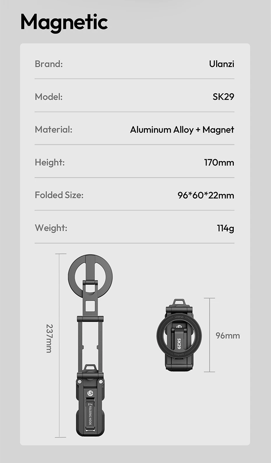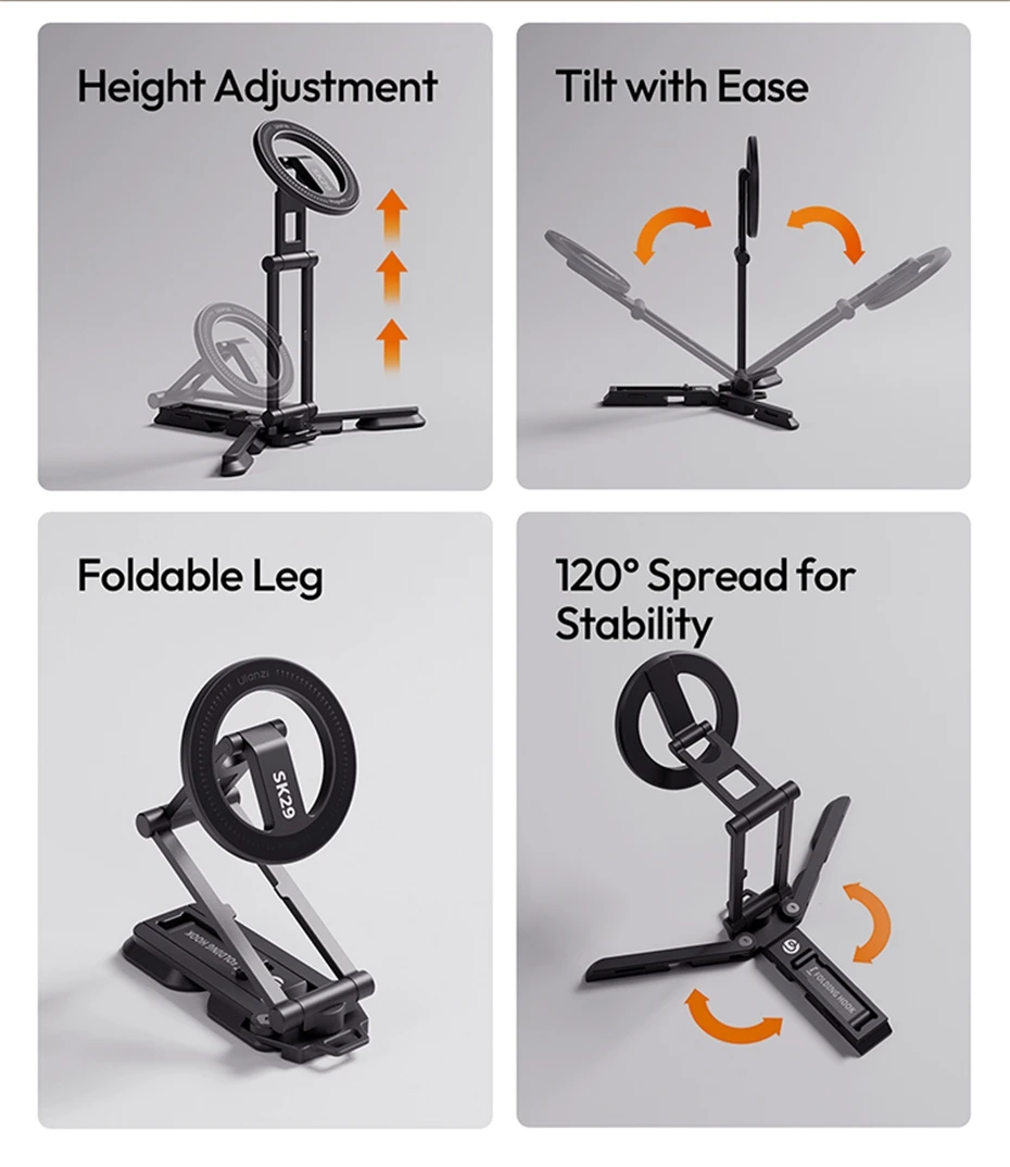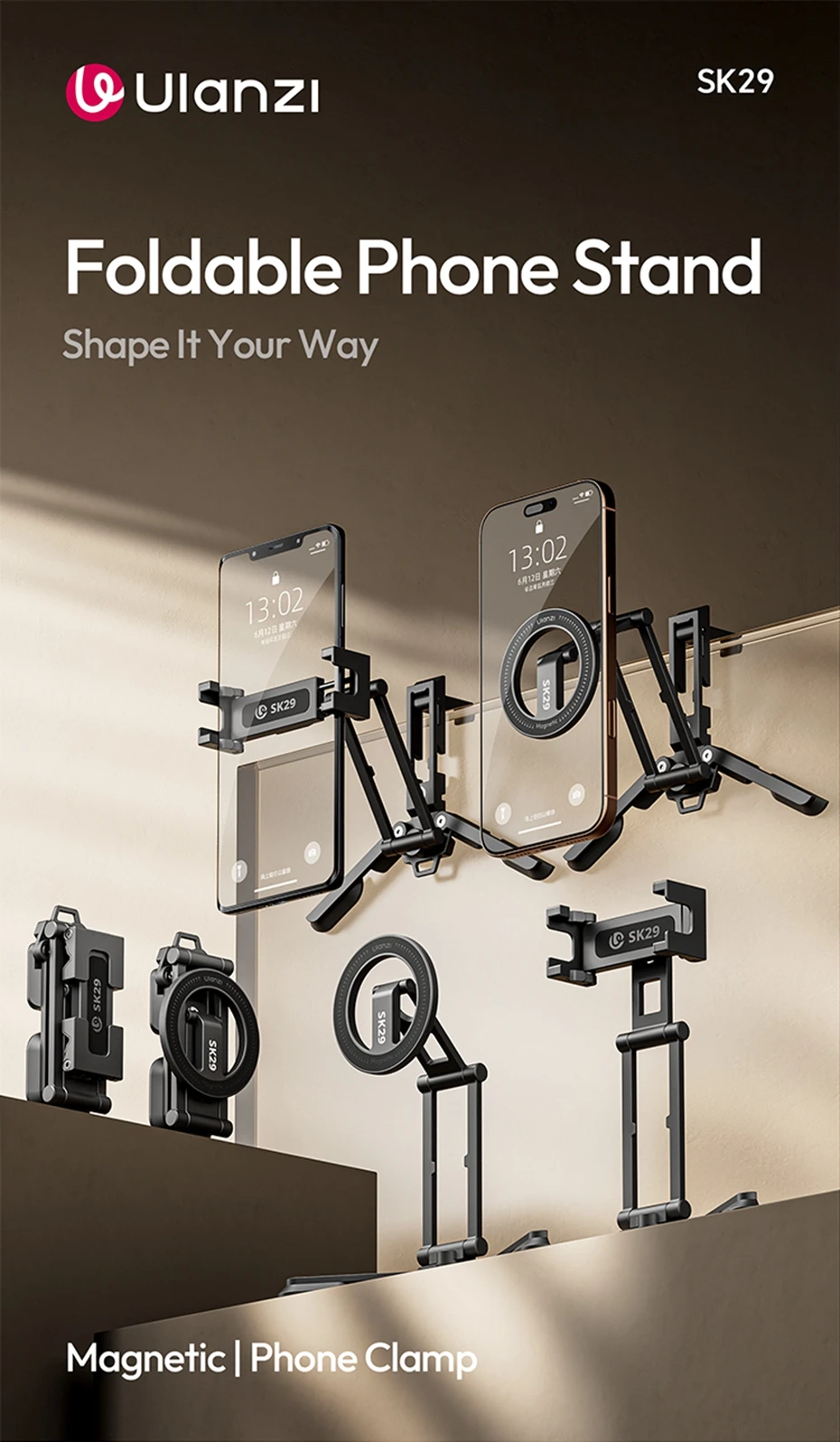 ULANZI SK29 多用途攝影手機支架 - 磁吸款 | 多角度調節設計 | 穩固防滑底座 | 支援橫豎拍切換 | 隨身折疊收納 | 香港行貨