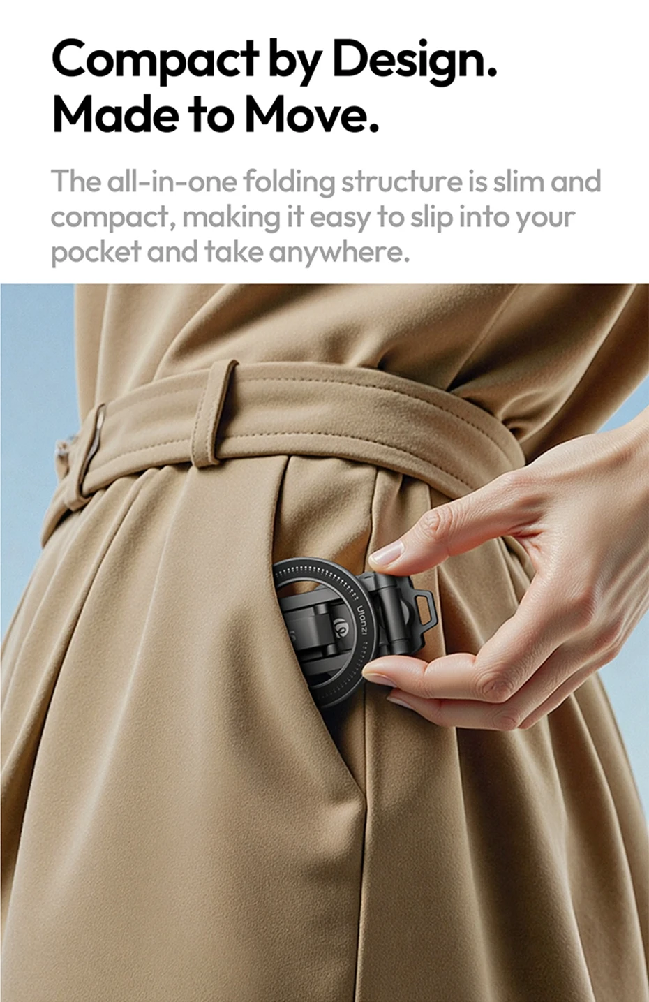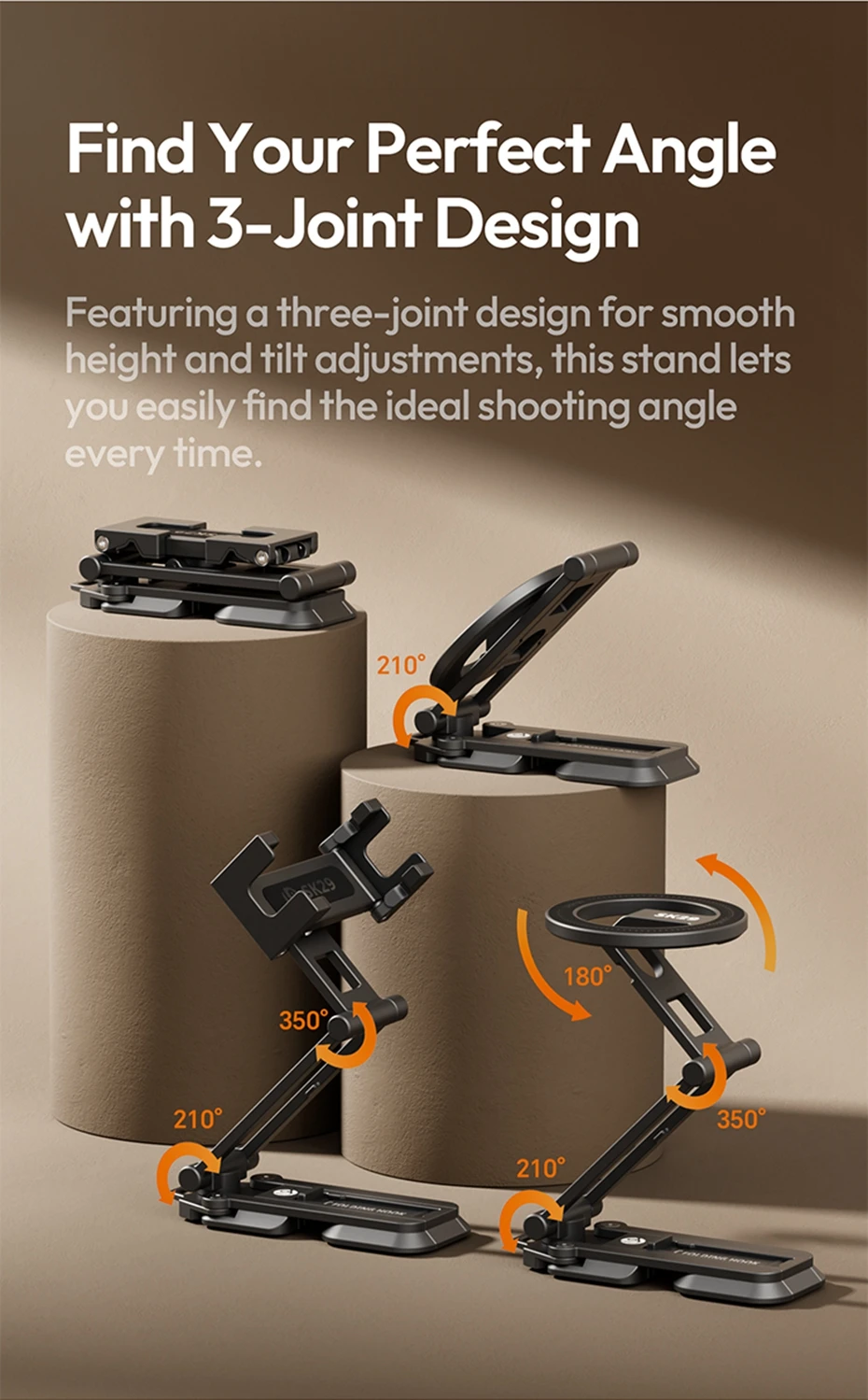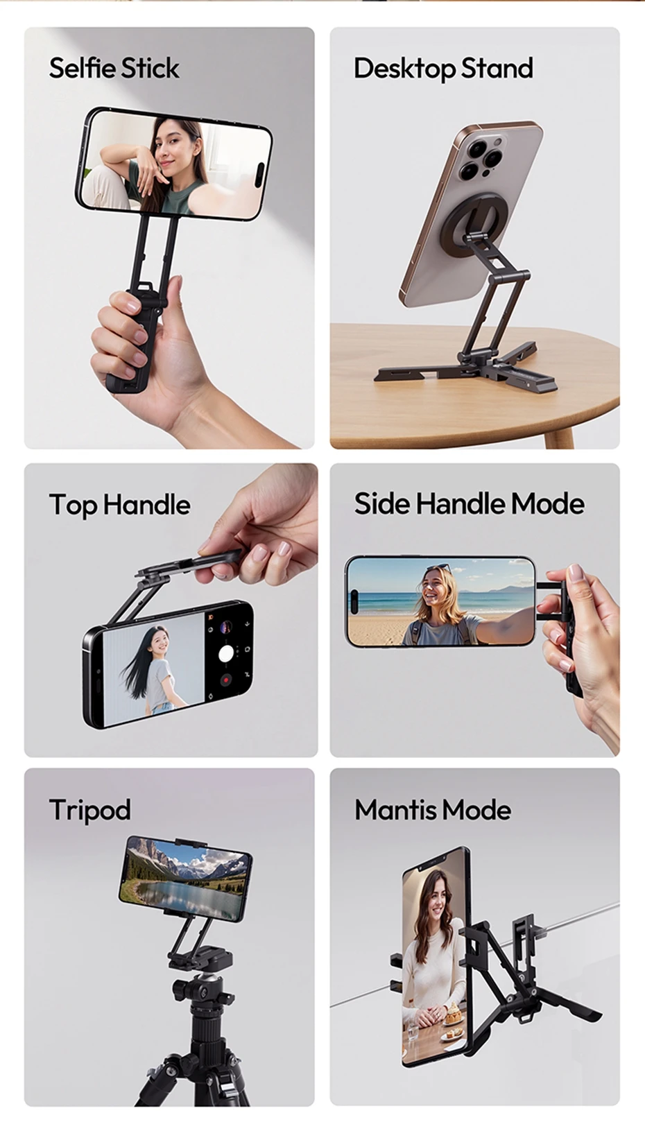 • 360° 靈活旋轉:支架支援全方位 360° 流暢旋轉,無論是豎屏記錄生活點滴、拍攝社交媒體素材,還是橫屏創作視頻,都能隨心切換,輕鬆捕捉理想角度。