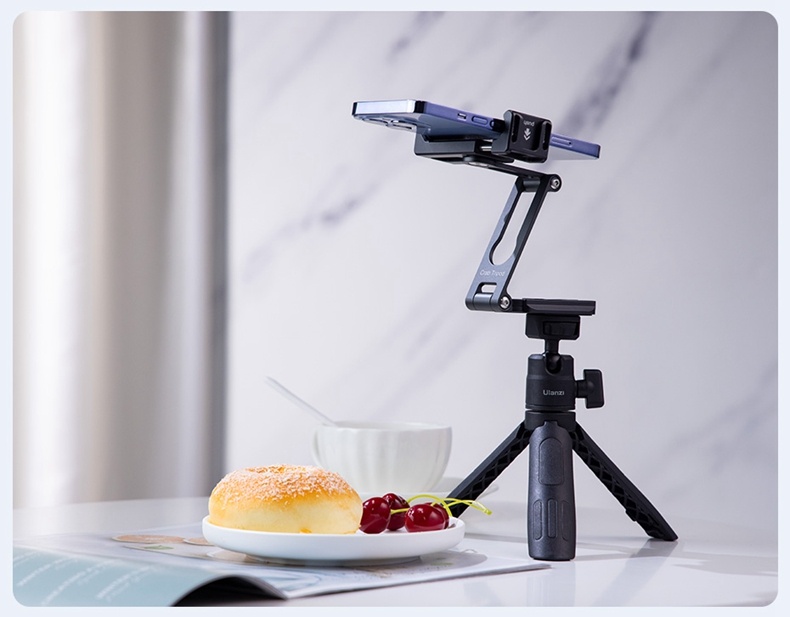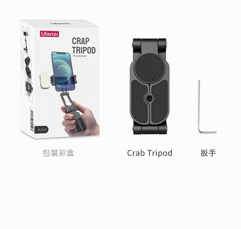 Ulanzi HP004金屬蟹夾手機支架,採用鋁合金材質打造,結實耐用,全金屬機身彰顯品質,顏值與實力並存。支架可折疊伸縮,多處鏤空設計,輕巧便攜,可隨手放進口袋。它擁有310°底部與270°頂部鉸鏈,支援360°手機旋轉,多角度自由懸停,無論是會議影片、Vlog拍攝,或是直播、追劇都適用。收攏支架腳可使用阿卡插槽與1/4吋接口連接三腳架,手機夾兩端的雙冷靴口方便添加麥克風、LED燈等配件,適配2.36至3.74吋寬的智慧型手機 。