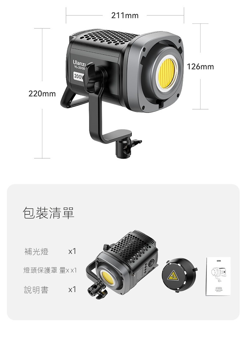 Ulanzi VL200Bi 200W雙色溫攝影燈 - 主燈 | 手機遙控 | COB燈珠 | 香港行貨