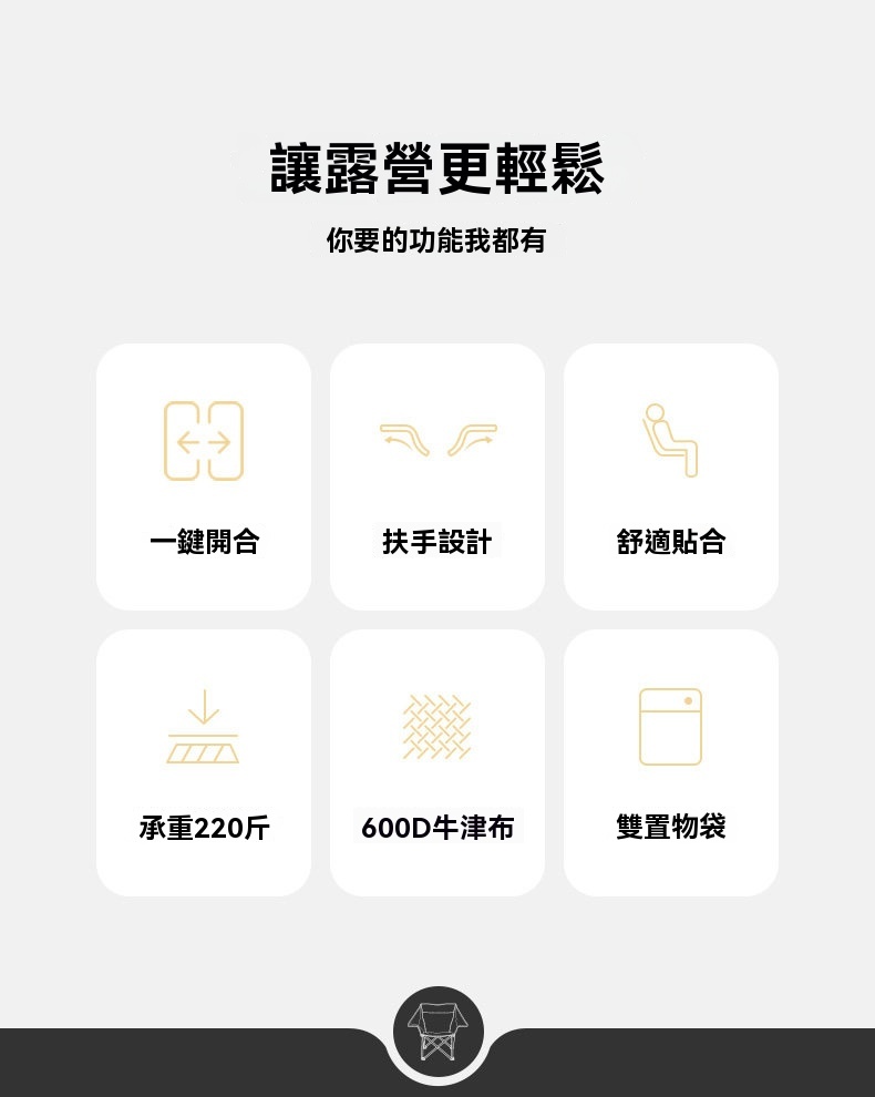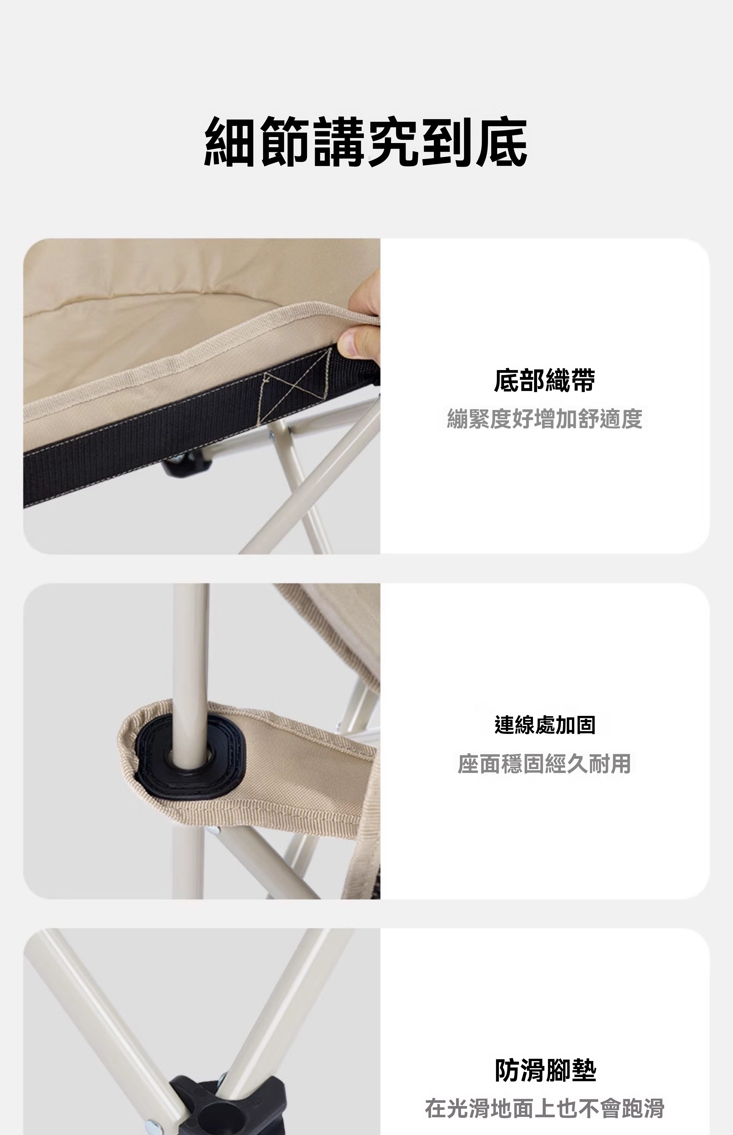 • 穩固安全細節:底部織帶增加繃緊度,連線處加固,並配有防滑腳墊。