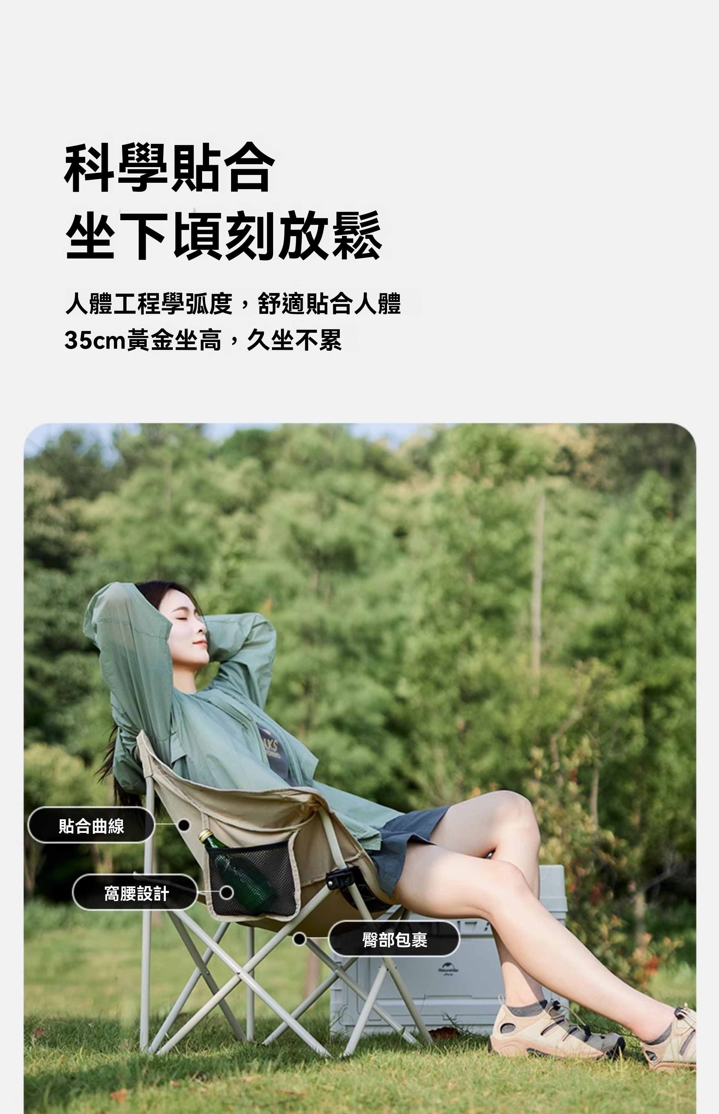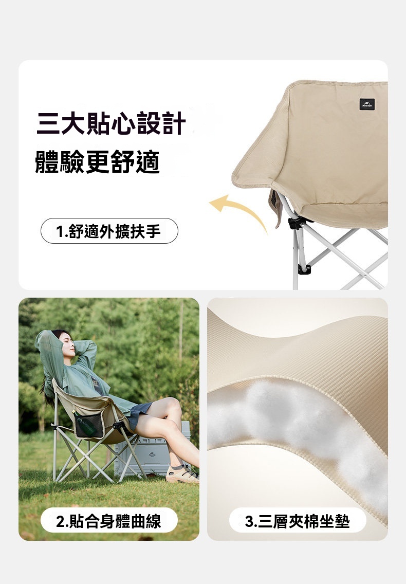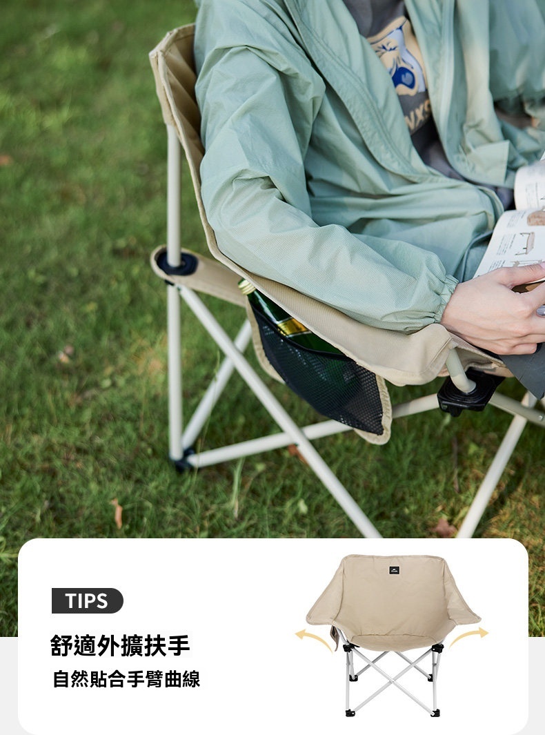 NatureHike Stellaluna T01 露營靠背外擴扶手折疊月亮椅(CNH23JU13002) - 砂岩色 | 貼合身體 | 一鍵開合