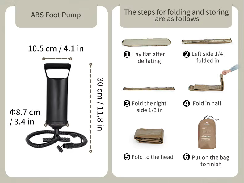 • 高彈支撐:充氣後形成高彈軟墊,均勻分散體重壓力,有效緩衝地面不平整,提供舒適睡眠體驗。