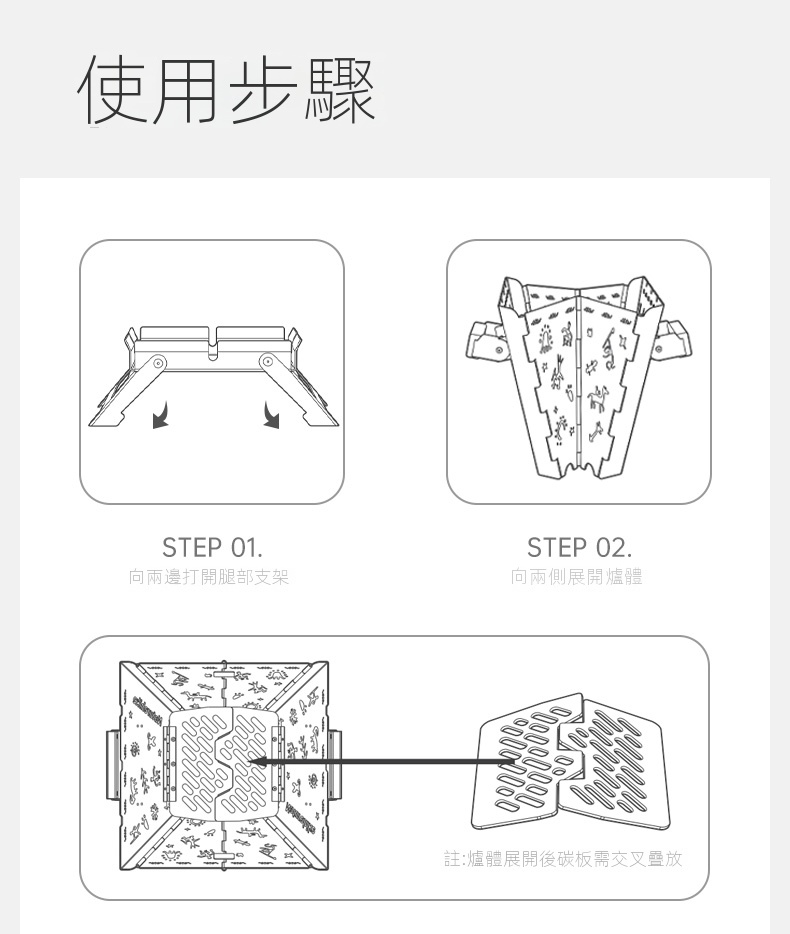 • 展開即用,免安裝爐體,隨時隨地輕鬆使用