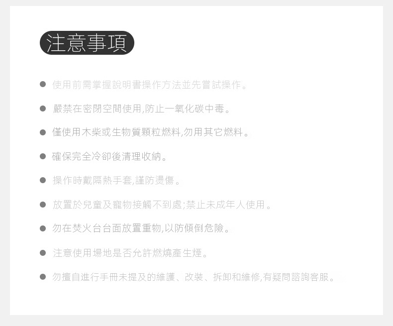 • 一爐多用,適用於取暖、煮茶、燒烤等多種場景