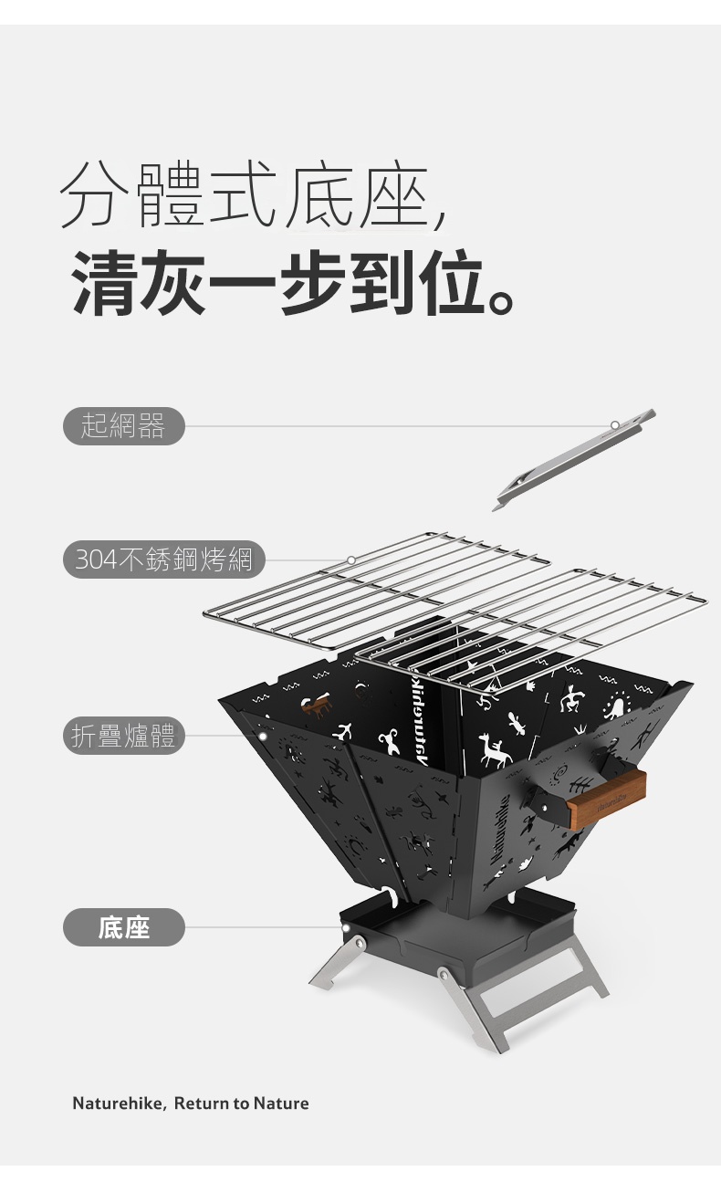 Naturehike 圖騰2.0 · 戶外多功能折疊焚火台(CNH22CJ036) - 黑色 | 展開即用 | 一爐多用 | 免安裝爐體 | 分體式底座