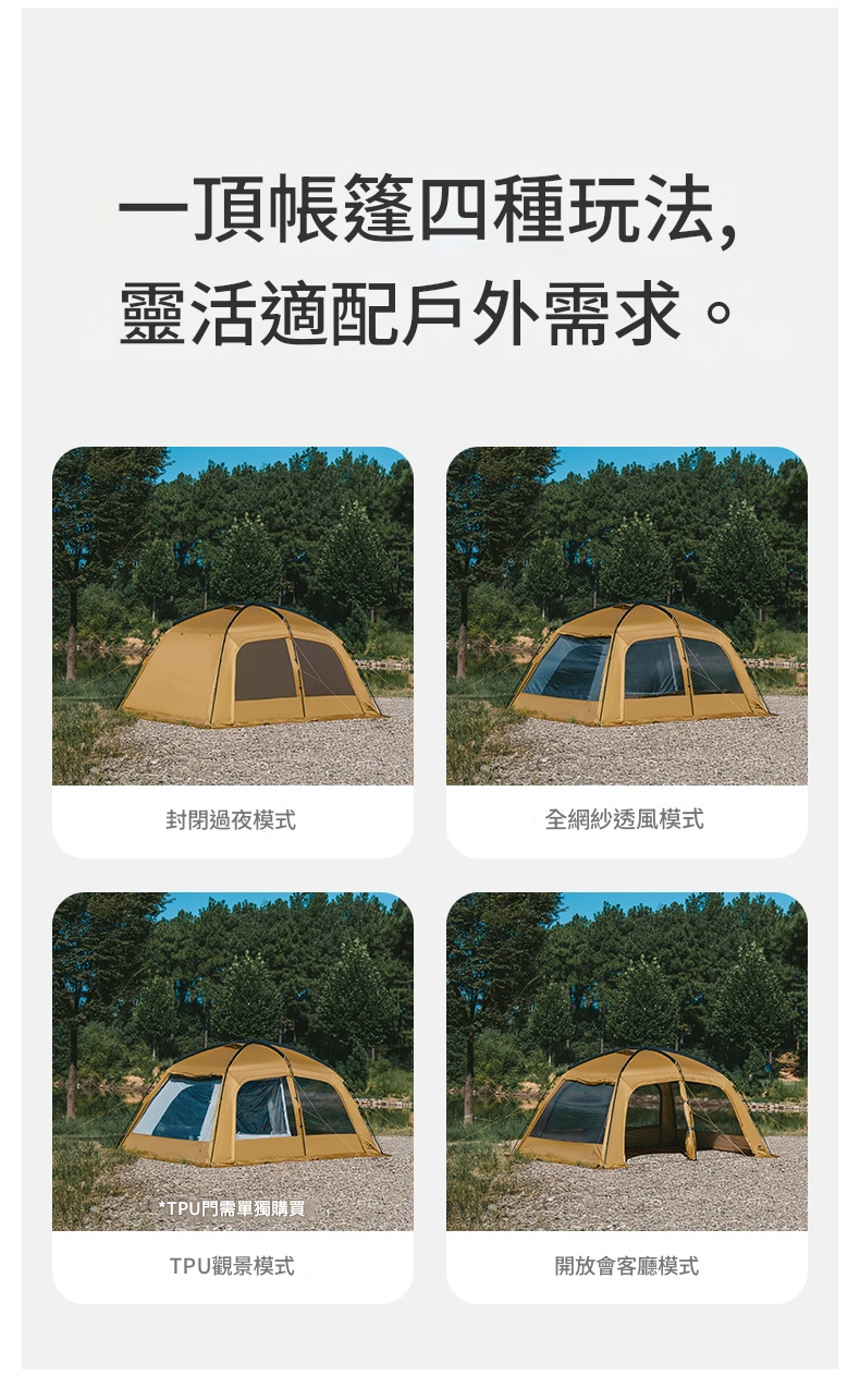 • 一頂帳篷四種玩法,靈活適配戶外需求