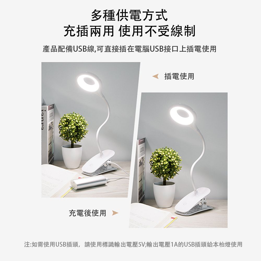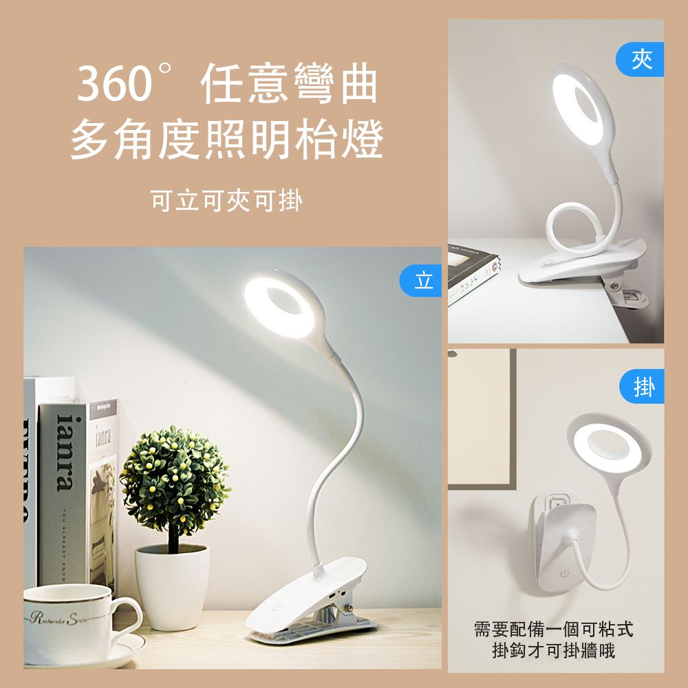 Nidouillet ET050801 專業護眼夾枱燈 - 白色 | 充電插電兩用 | 三檔調光 | 圓環形LED燈珠 | 香港行貨