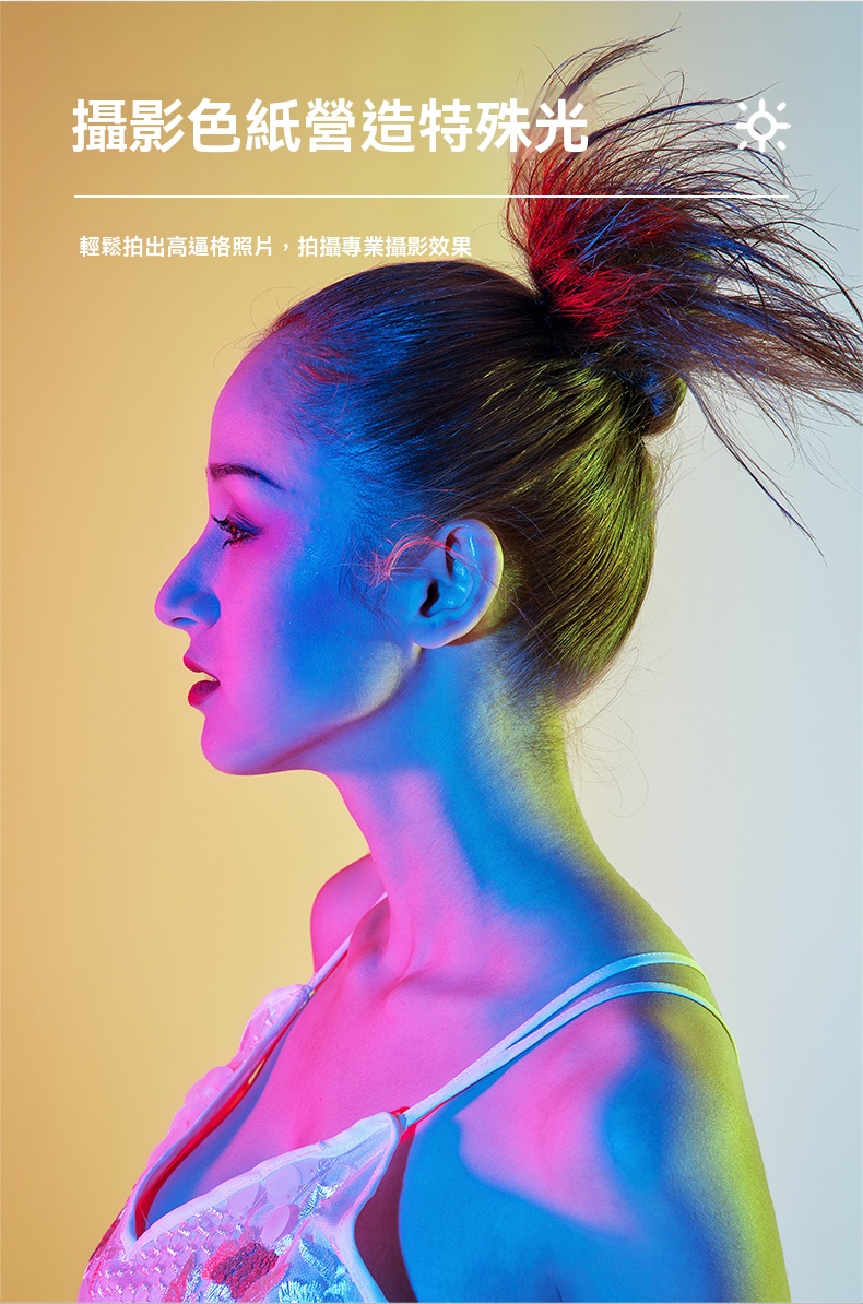 • 附帶六種顏色的攝影色紙,增加創作靈感。