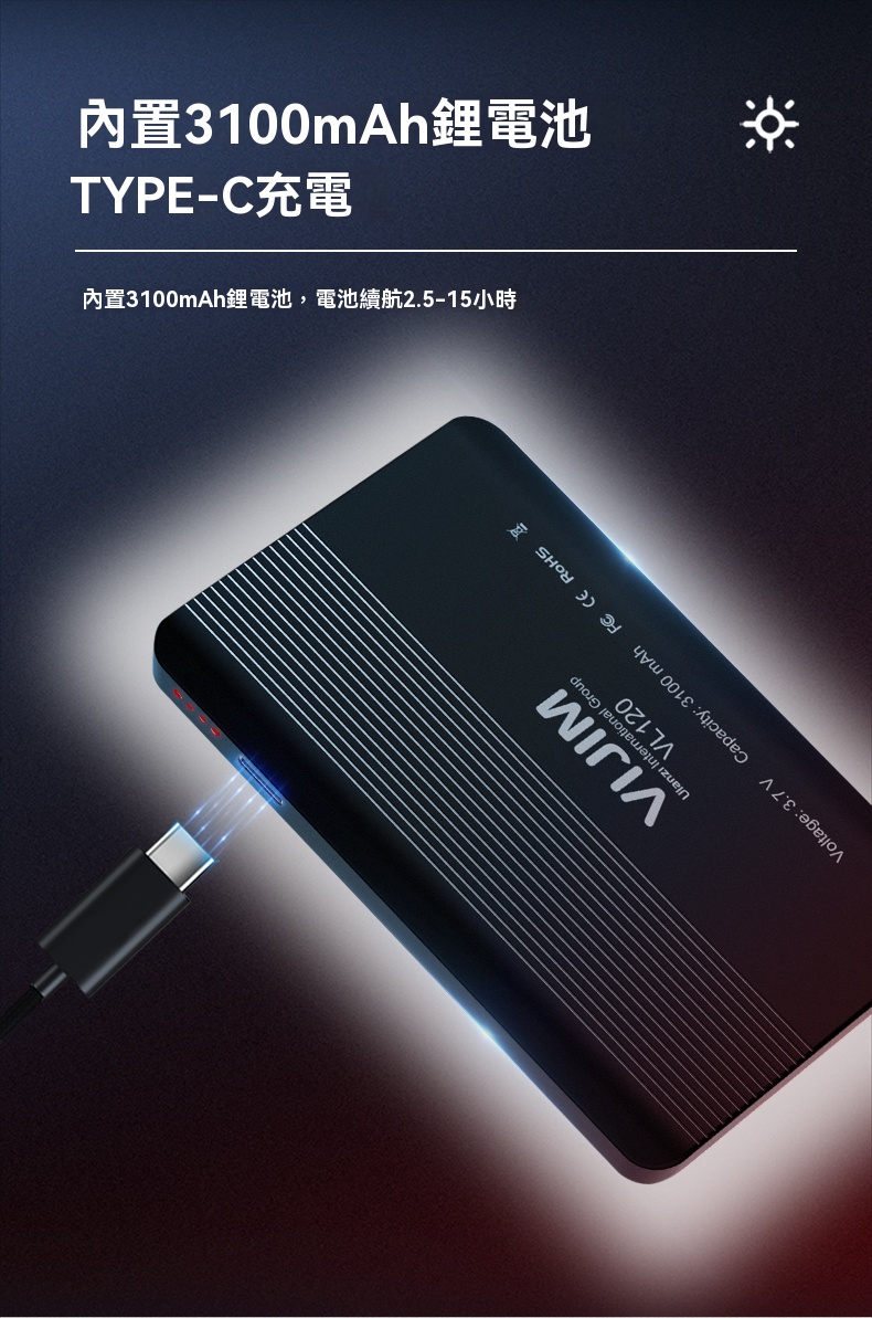 • 內置3100mAh鋰電池,續航時間長達2.5至15小時。