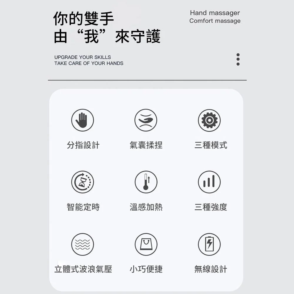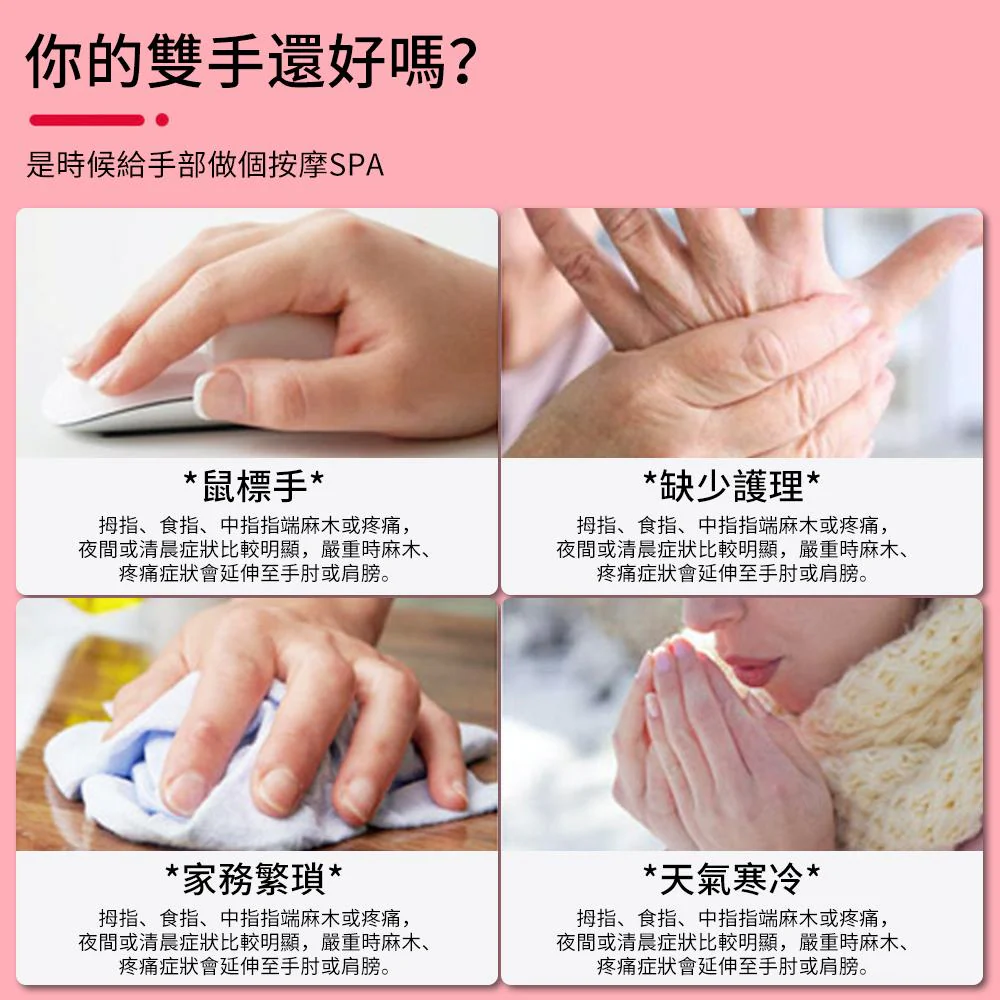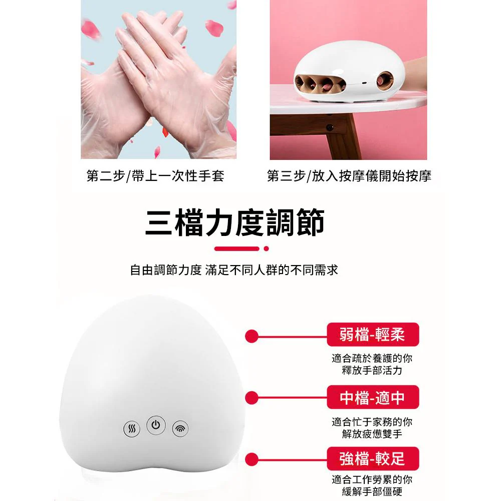 • 無線充電式按摩,不受拘束,隨時隨地可享受手部放鬆