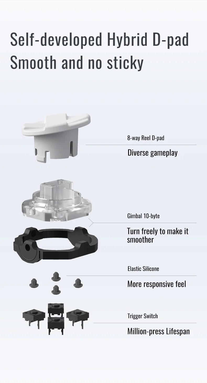 • 按鈕:混合 D-Pad 和機械觸感 ABXY 按鈕。