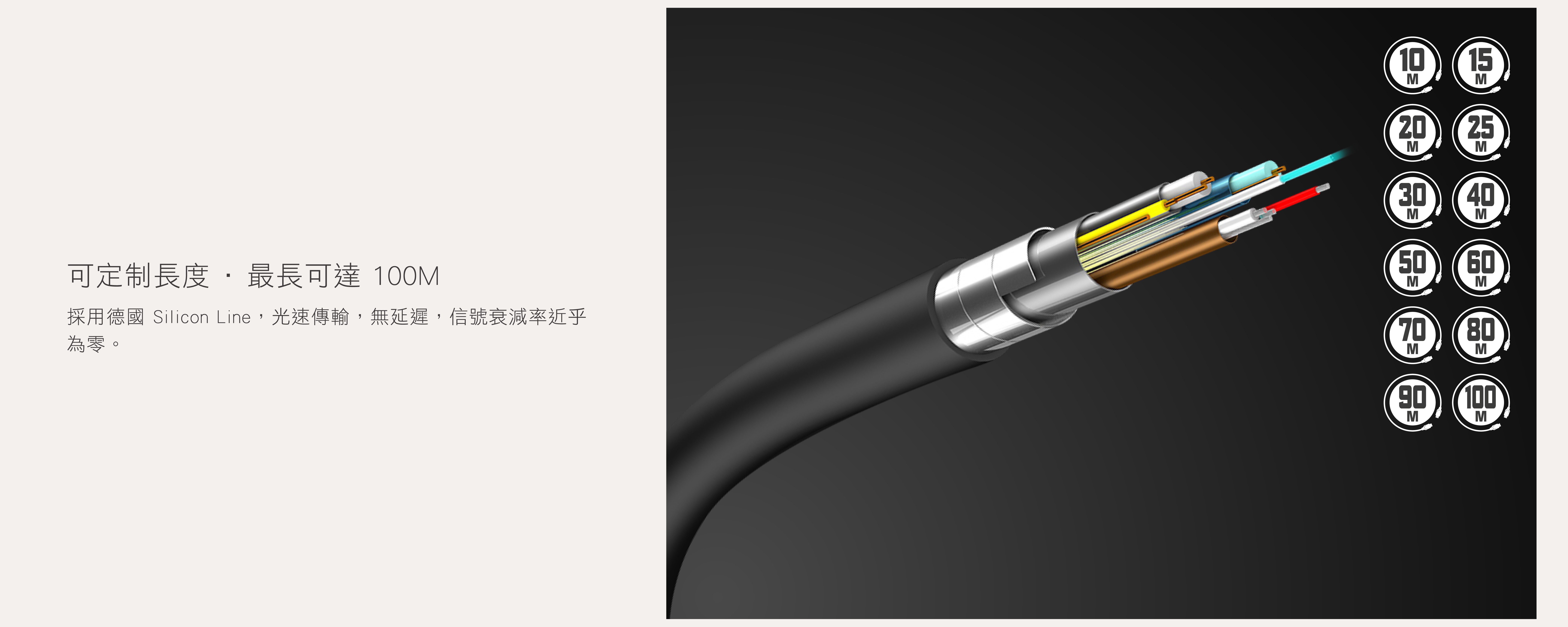 • 線材長度:可客製化,最長可達100m,常見規格有10m、15m、20m等。