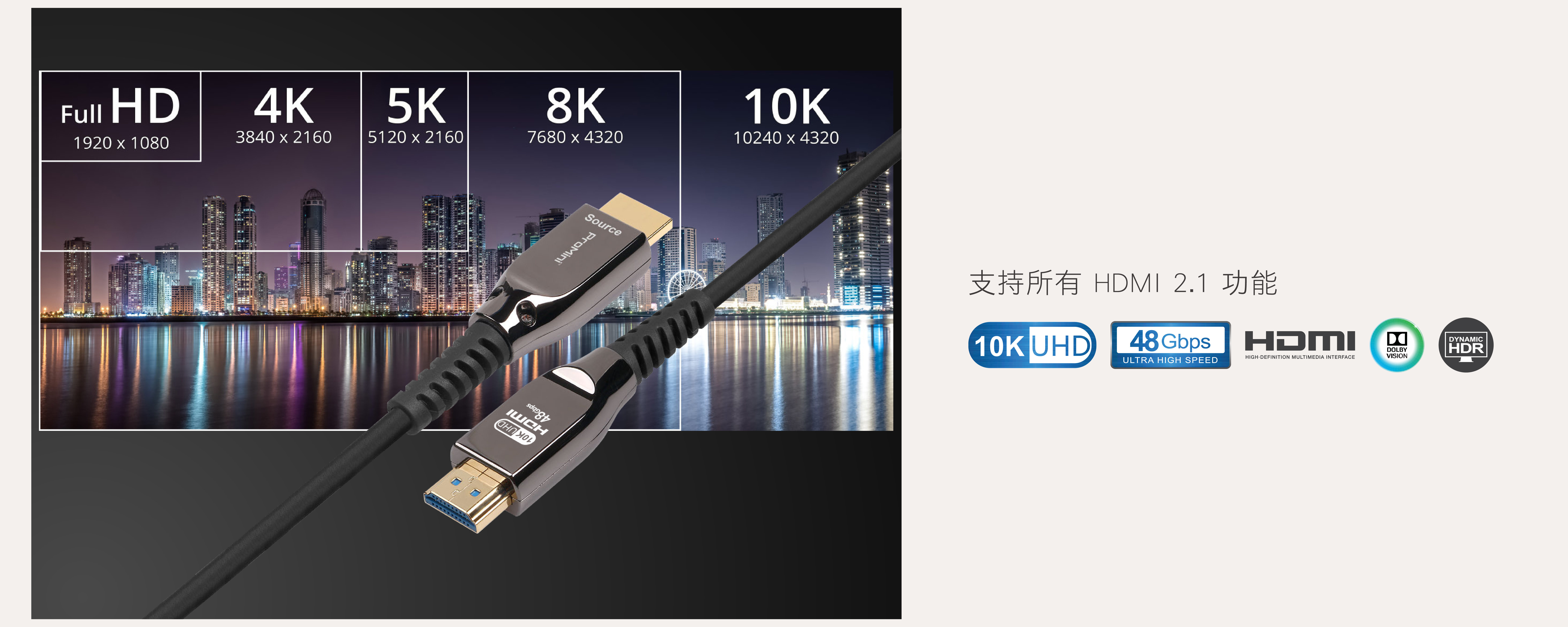 • 傳輸速率:48Gbps,確保影像訊號無壓縮傳輸。