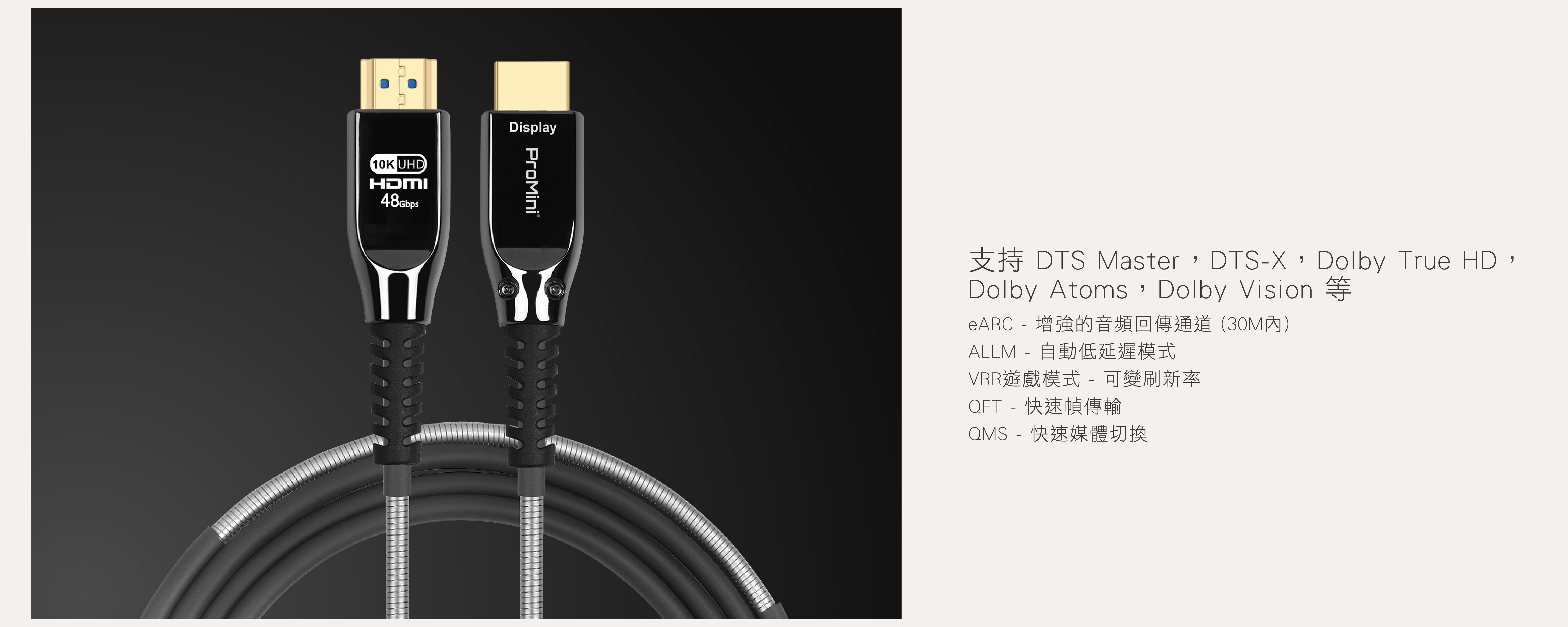 ProMini 10K HDMI 2.1 AOC 光纖電纜-10m | 支持所有HDMI 2.1功能 | 光速傳輸無延遲 | 香港行貨