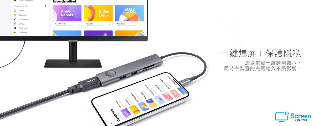 ProMini CH8T 8-in-1 USB-C 擴展器 | 一鍵鎖屏 | 關閉/開啟顯示屏 | 保護私隱 | 香港行貨