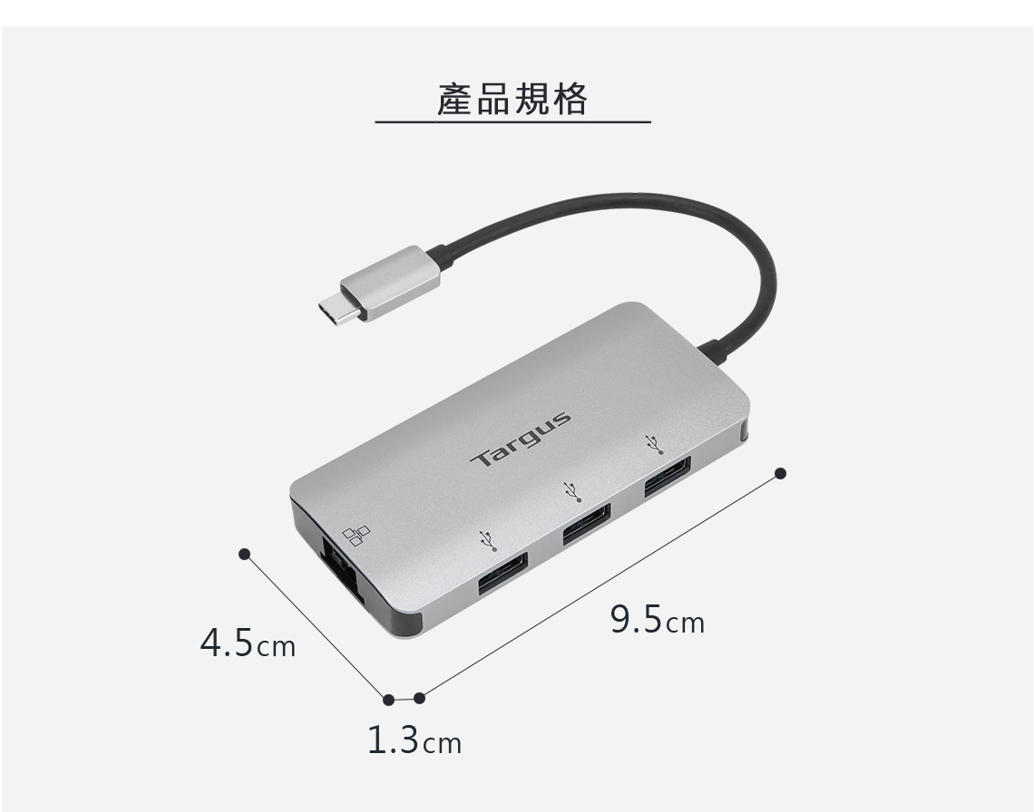 TARGUS ACA959 四合一多功能集線轉接器 - 銀色 | 5Gbps數據傳輸速率 | 適用 PC / Mac 設備 / Chrome 設備 | 香港行貨