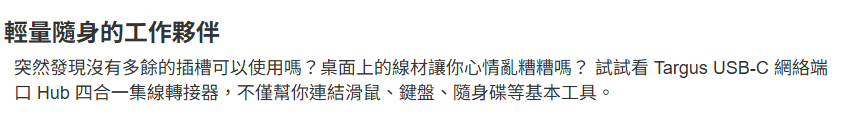 TARGUS ACA959 四合一多功能集線適配器是輕量便攜的工作好夥伴,集多種實用功能於一體。它支援以太網連接,滿足穩定網絡需求,同時搭載高速傳輸協議,USB 3.2 與 USB 3.0 規格均能實現 5Gps 快速傳輸,且向下兼容 USB 2.0 設備,數據傳輸高效無阻。產品相容於 Thunderbolt 3 技術,配備 USB-C 快速充電接端口,可輸出 100W(20V/5A)大功率電源,充電與傳輸兩不誤。其通用性極強,完美適配 PC、Mac 設備及 Chrome 設備,不論是日常辦公還是移動使用,都能輕鬆解決多設備擴展需求,為工作生活帶來便利體驗。