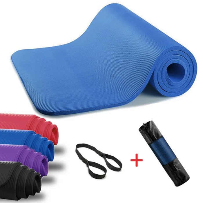 Buy 約1cm超厚瑜伽墊 - 藍色 | 環保NBR | 含網袋+綁帶 price in outletexpress .com Hong Kong.In promotion and sale.