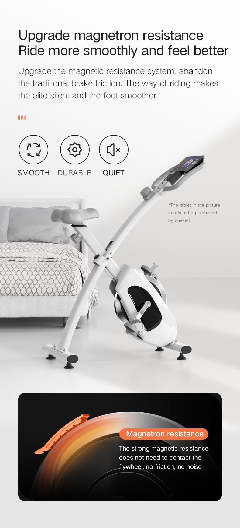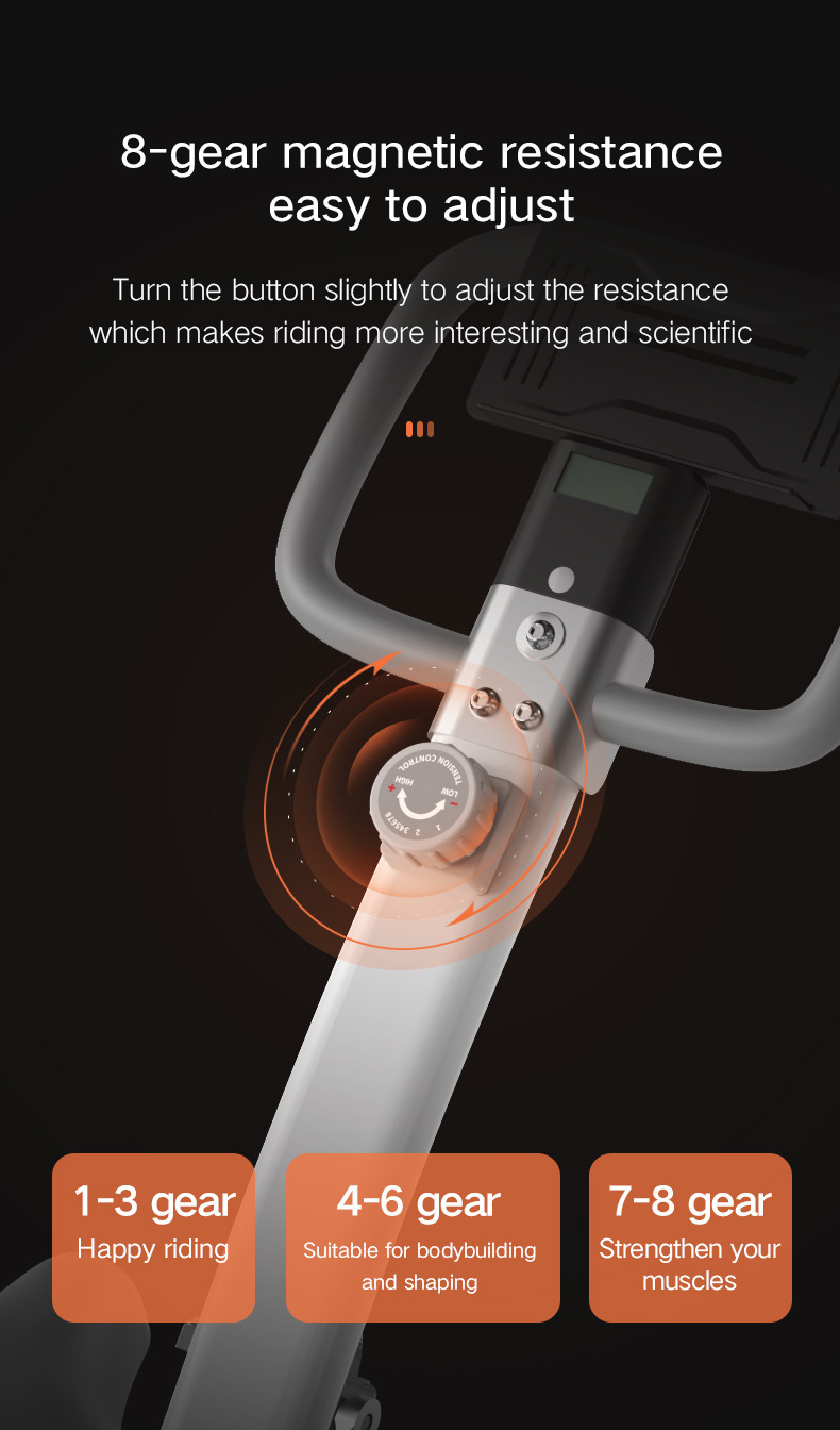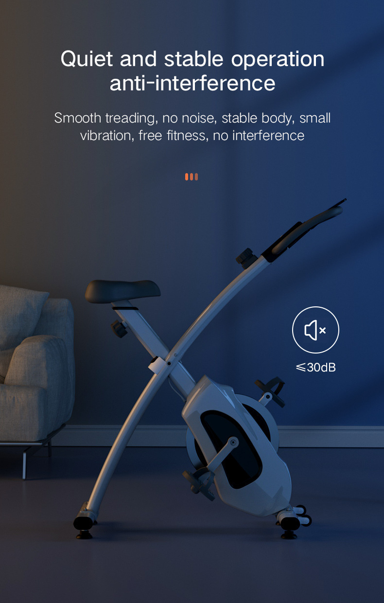 Xbike輕商用級可摺疊磁控健身單車,專為家庭健身空間設計。其採用升級的磁控阻力系統,告別傳統摩擦,提供順滑靜音的騎行體驗。配備雙飛輪皮帶傳動系統,踩踏流暢如流水,且終身免維護。機身採用高強度冷軋鋼管一體成型,表面經多層噴塗工藝,耐磨美觀。支持8檔磁控阻力調節,輕鬆旋鈕即可切換強度。貼心設計包括可摺疊收納以節省空間,以及可調節高度的舒適坐墊和把手,滿足不同用戶需求。整體運行噪音低至30dB以下,健身不受干擾。