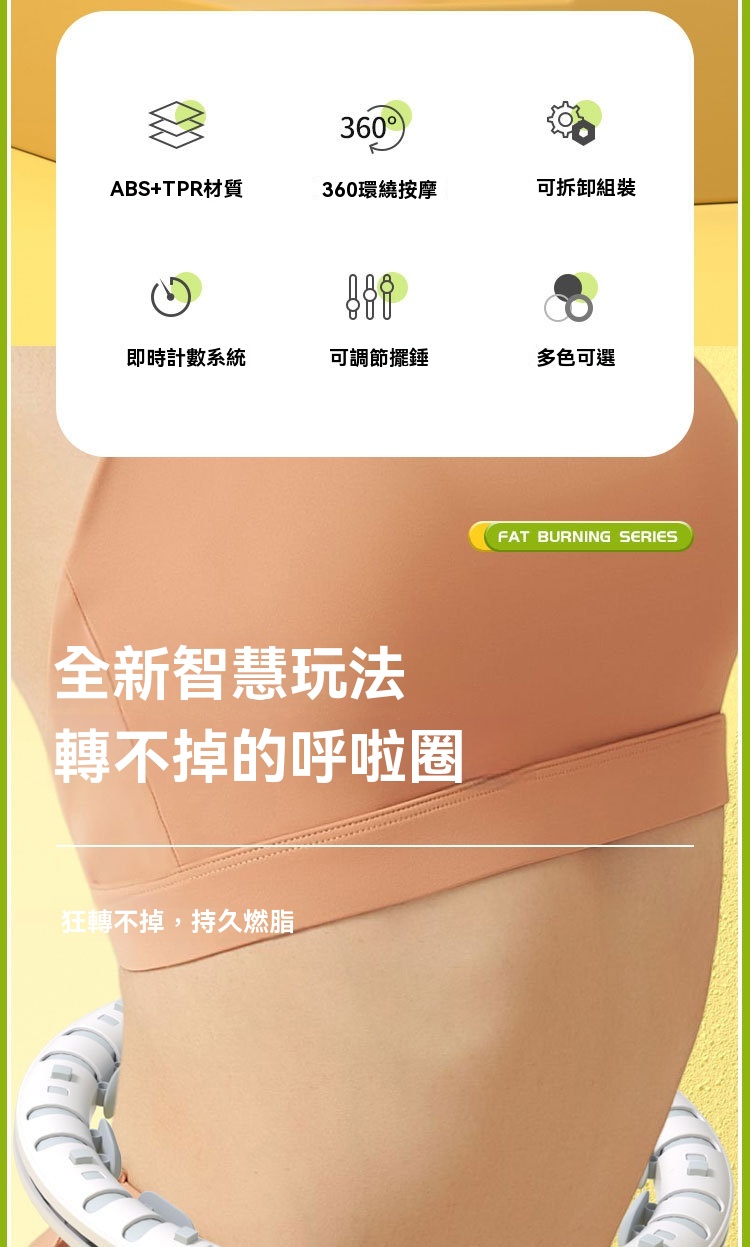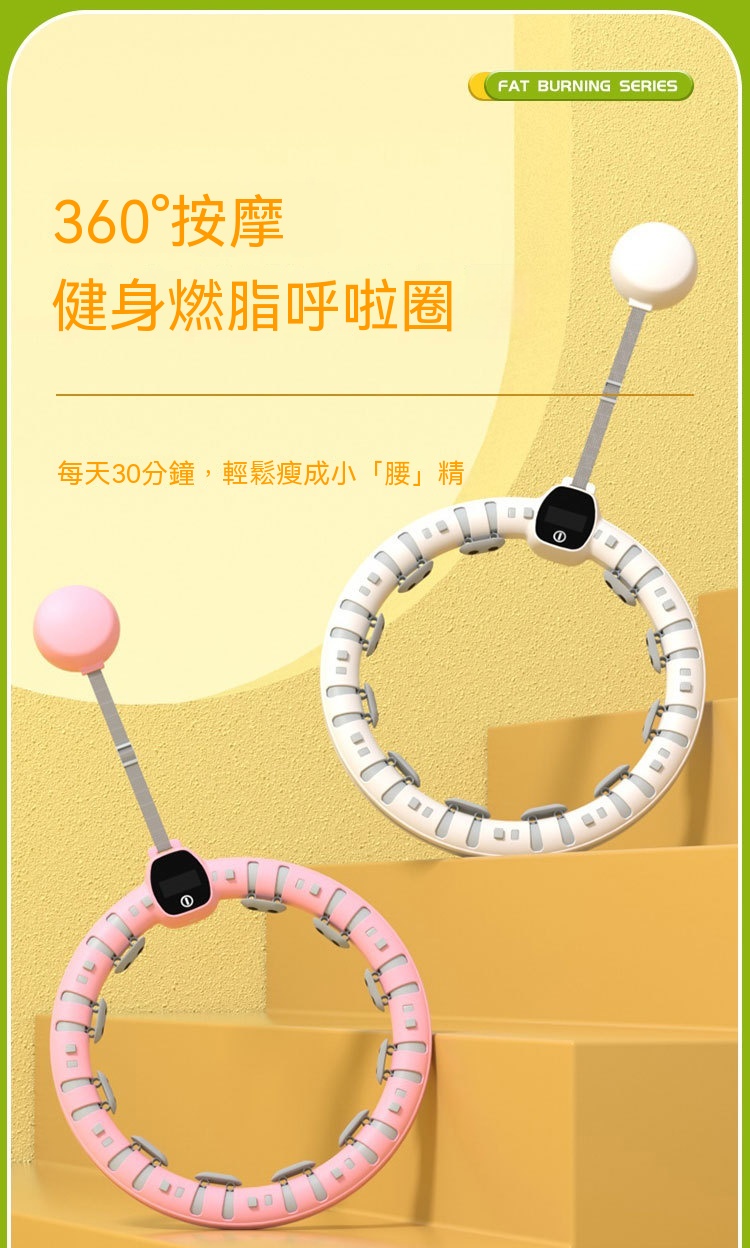可拆不掉落呼拉圈 | 健身燃脂 | 智慧計數 | 360°環繞按摩 | 可調大小 | 不卡殼順滑軌道
