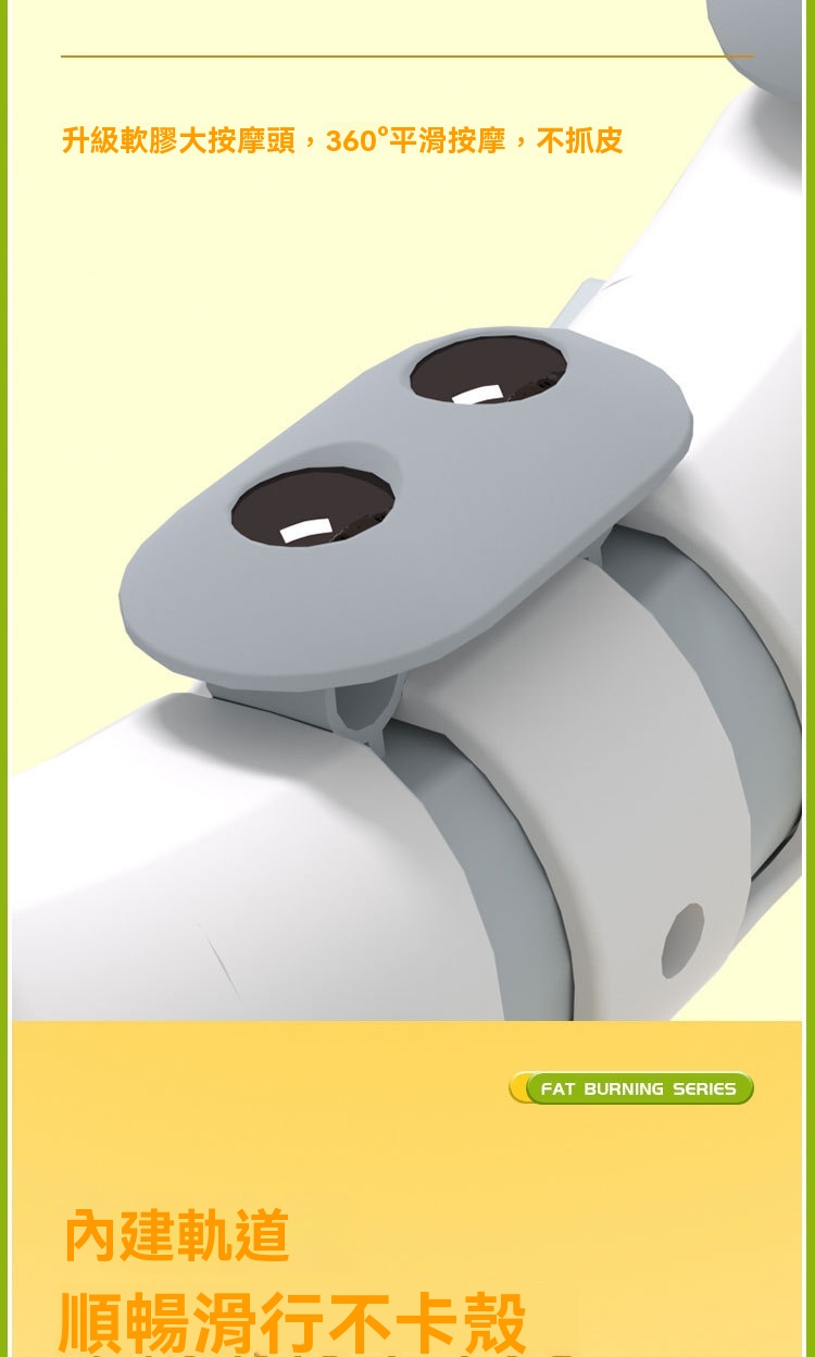 • 360°軟膠按摩頭:採用升級TPR軟膠大按摩頭,接觸面柔和親膚,能360度環繞按摩腰部肌肉,不抓皮、不疼痛。