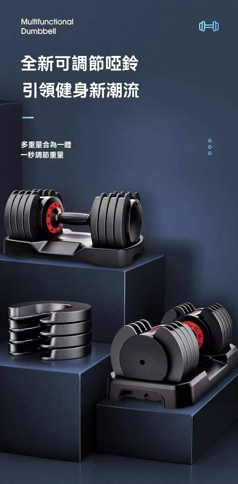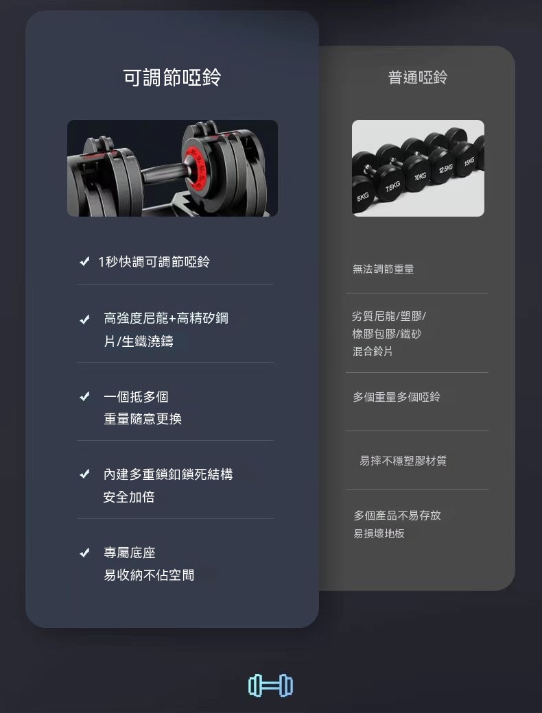 [32KG]可調節啞鈴 | 快速調節重量 | 運動健身啞鈴 | 家用健身器材 | 佔地僅0.09㎡