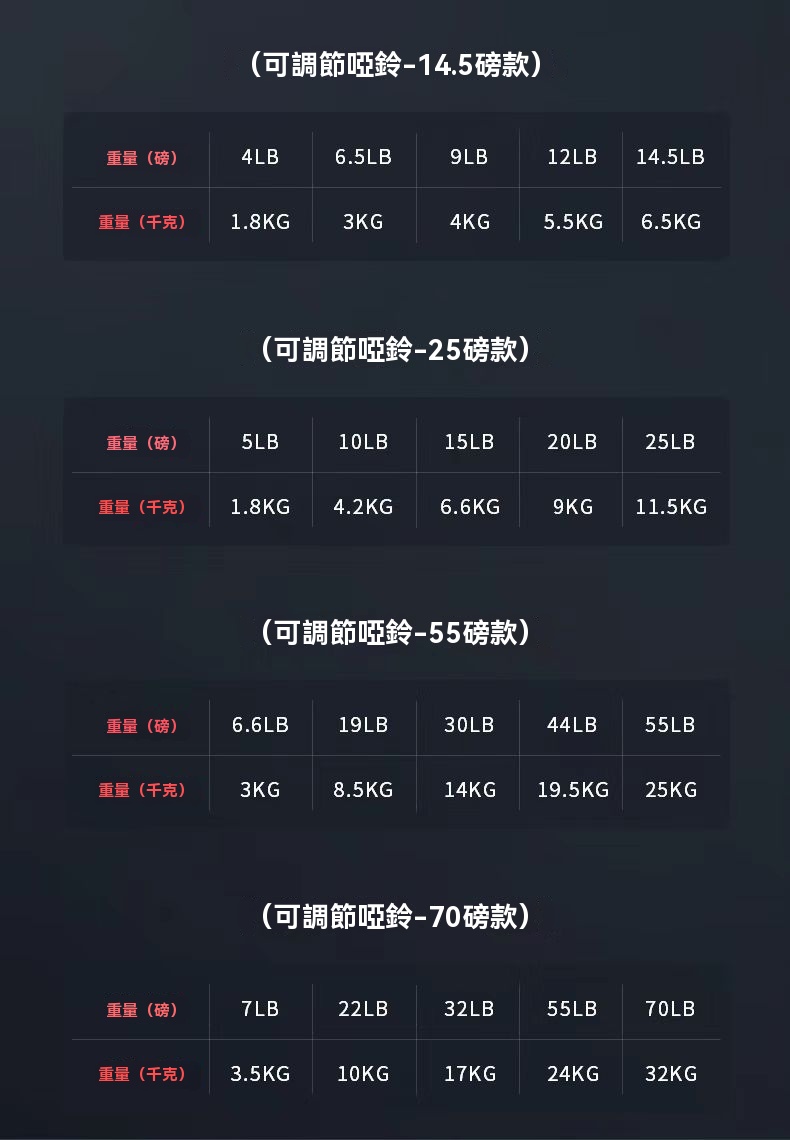 • 產品名稱:32KG可調節啞鈴(70LB款)