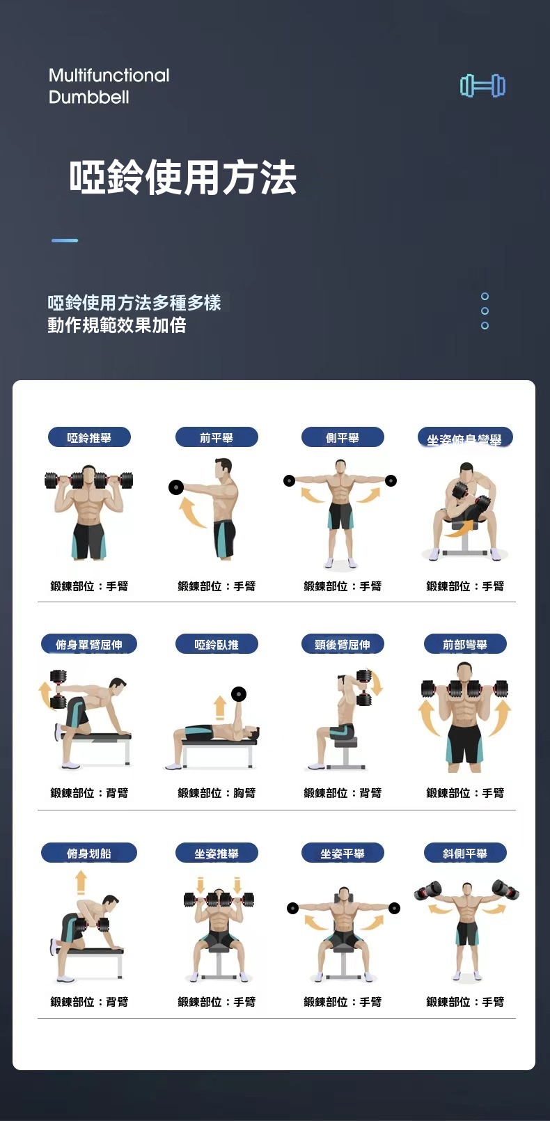 • 適用訓練:胸部、背部、肩部、手臂等多部位訓練