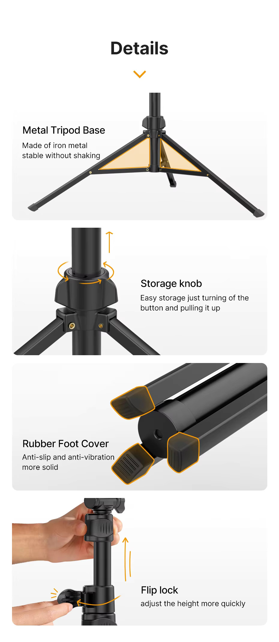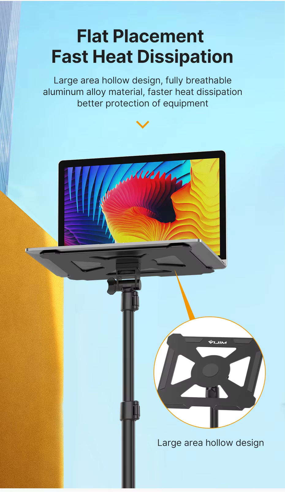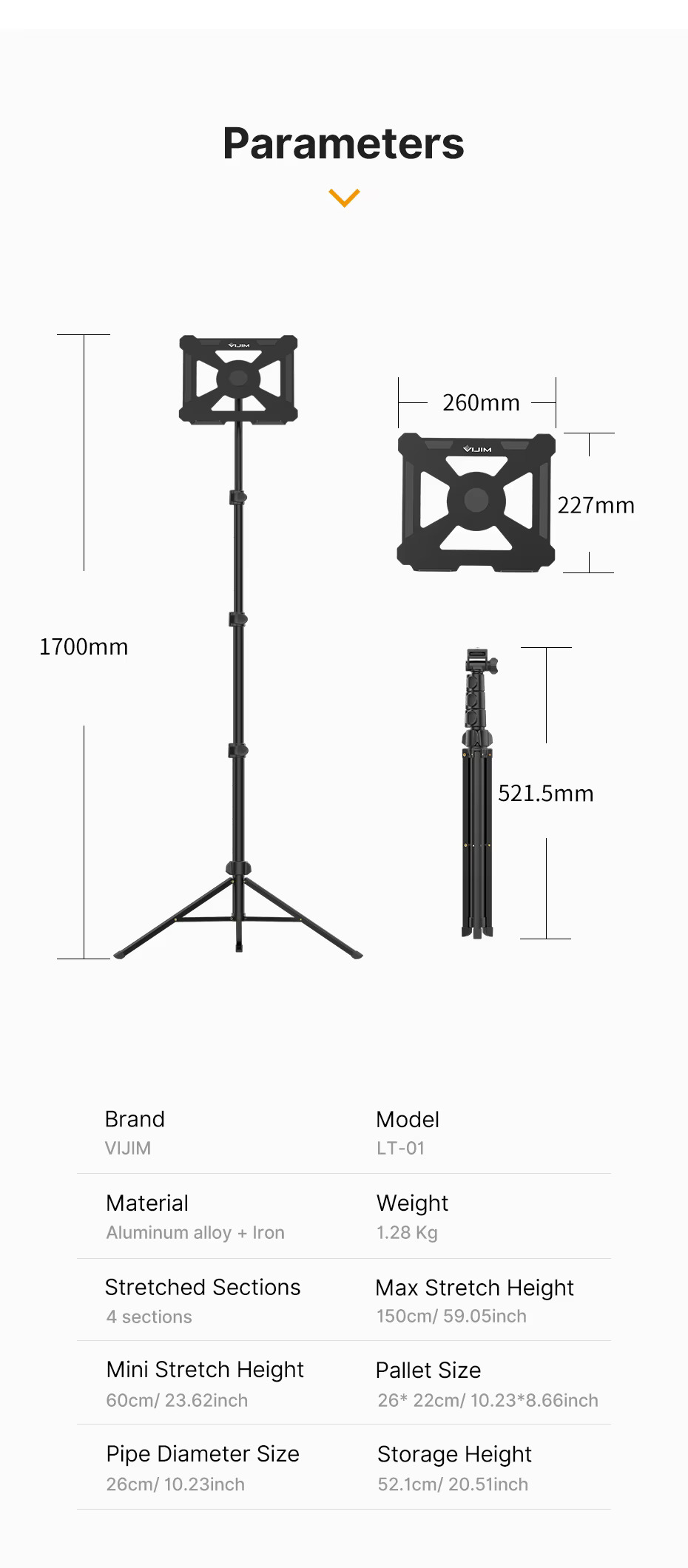 Ulanzi VIJIM LT01金屬四合一折疊三腳架,黑色外觀展現出沉穩質感。它融合創新設計,集多功能於一身,滿足多樣化拍攝需求。材質選用鋁合金與鐵,既保障1.28kg的輕盈便攜,又擁有3kg強大承重。托盤可180°前後、360°水平調節,內建矽膠墊防滑耐磨。採用三角中軸固定結構,4檔高度從60cm至150cm自由切換。大面積空心托盤設計,利於設備散熱。無論是投影機、電腦、平板,還是樂譜、DJ設備等,它都能輕鬆承載,是居家、辦公、表演等場景的得力助手 。