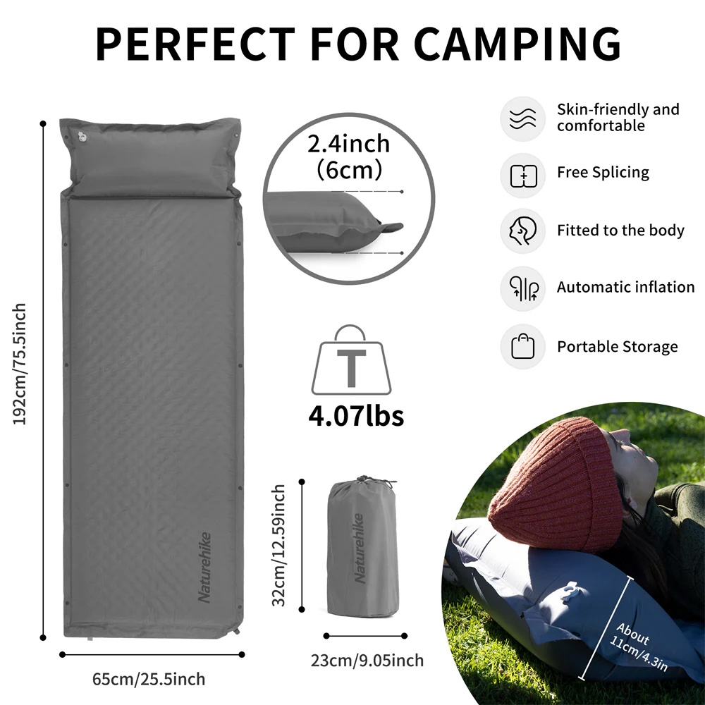 Buy Naturehike D01 自動充氣睡墊附枕頭(CNK2300DZ014) - 灰色(6cm厚) | 防水防潮 | 快速自動充氣 price in outletexpress .com Hong Kong.In promotion and sale.