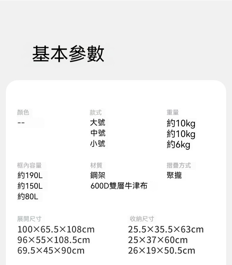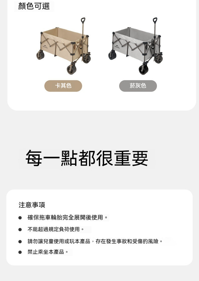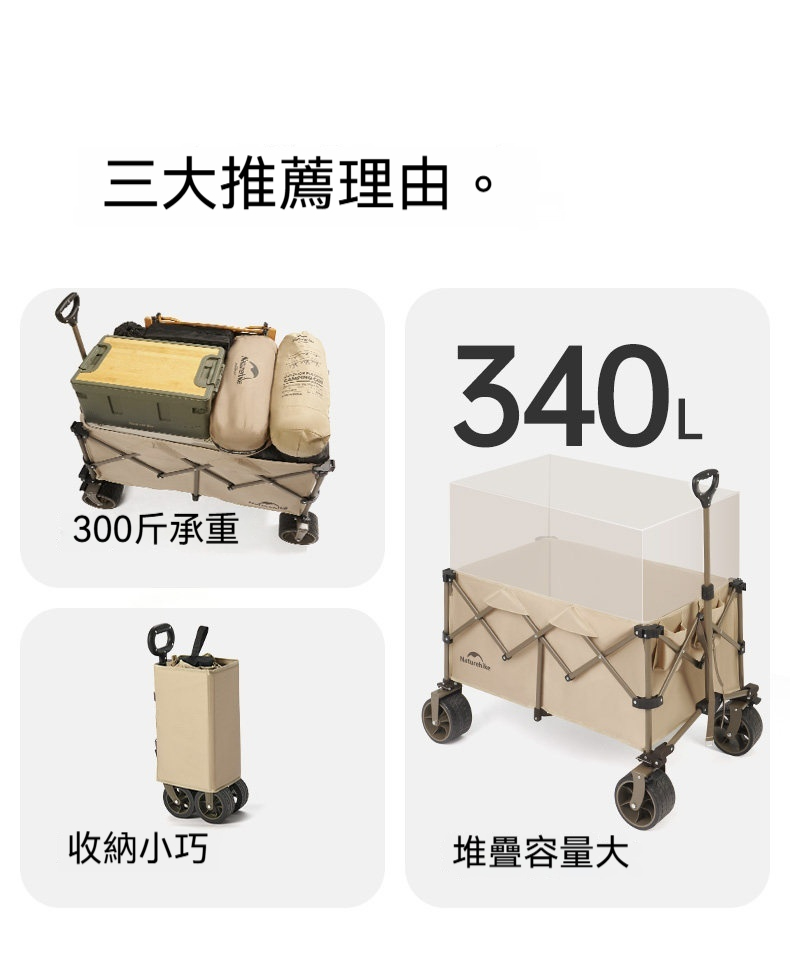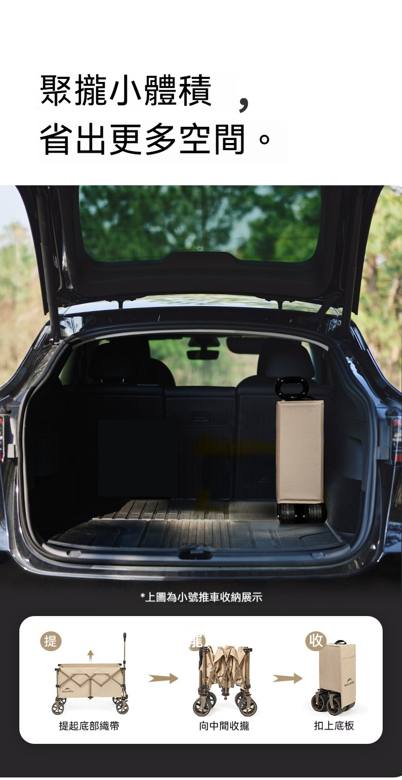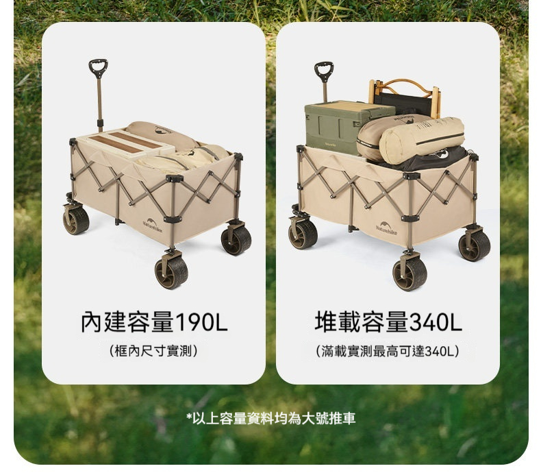 • 超大容量:一車搞定,盡載露營裝備
