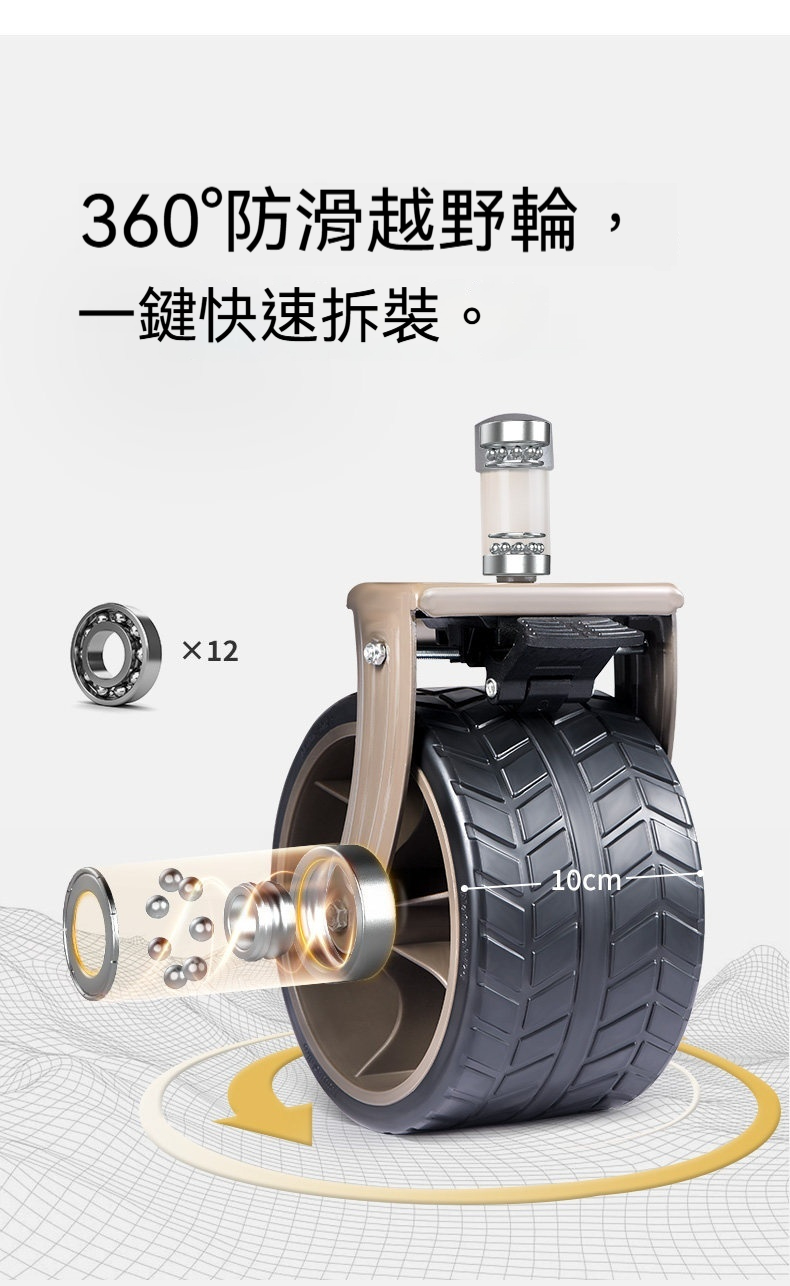 • 多地形越野輪:360°防滑輪胎搭配快拆設計,適應砂石、泥濘等多種路面
