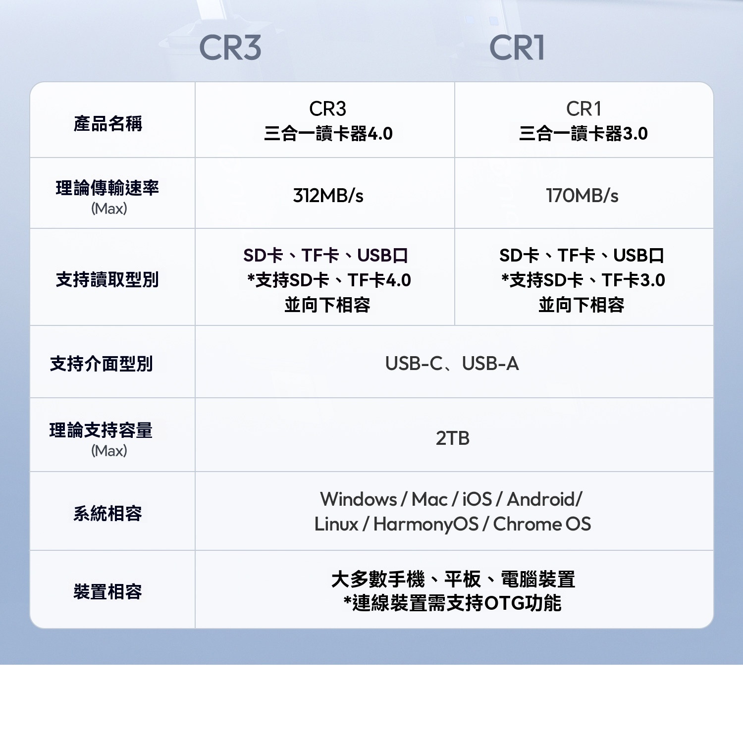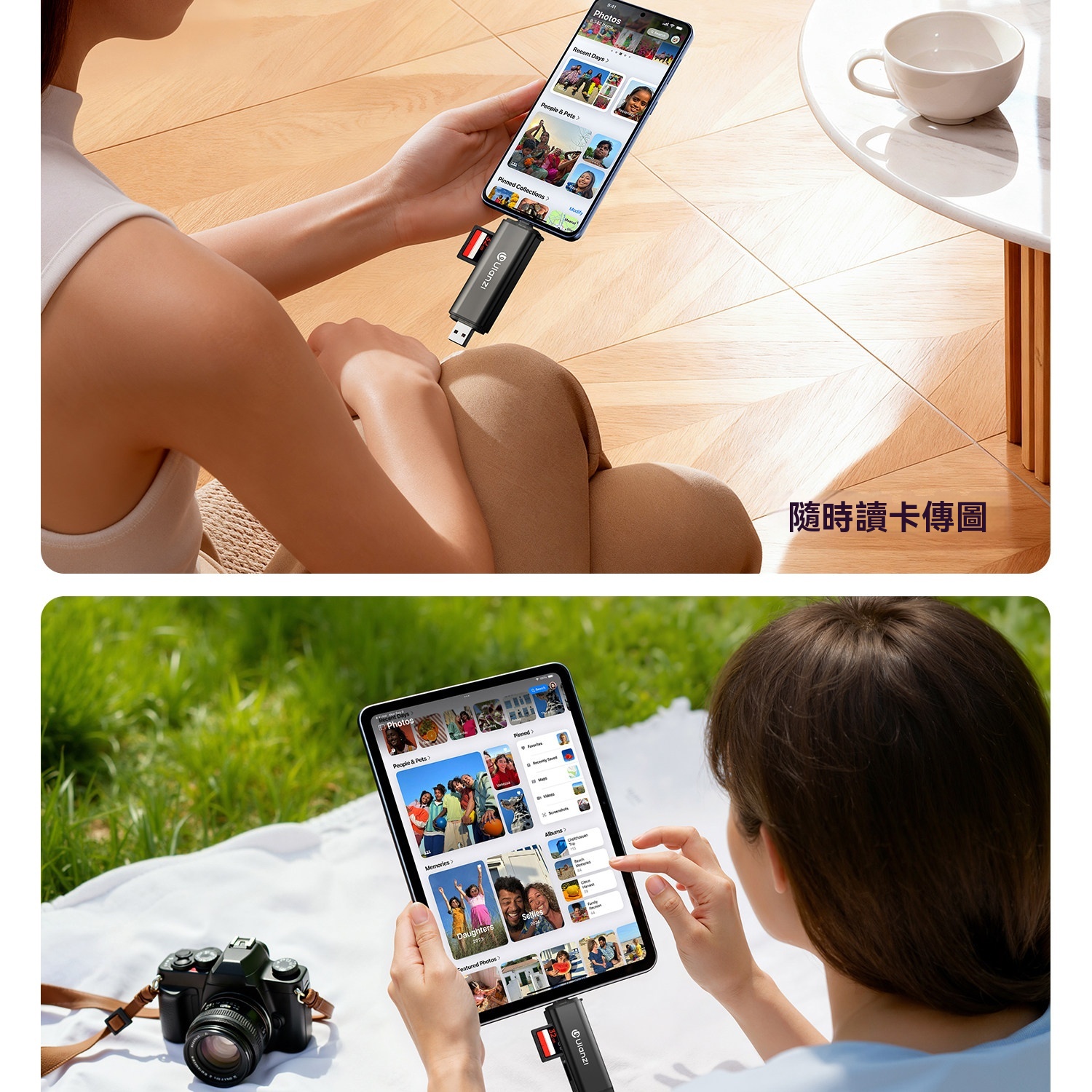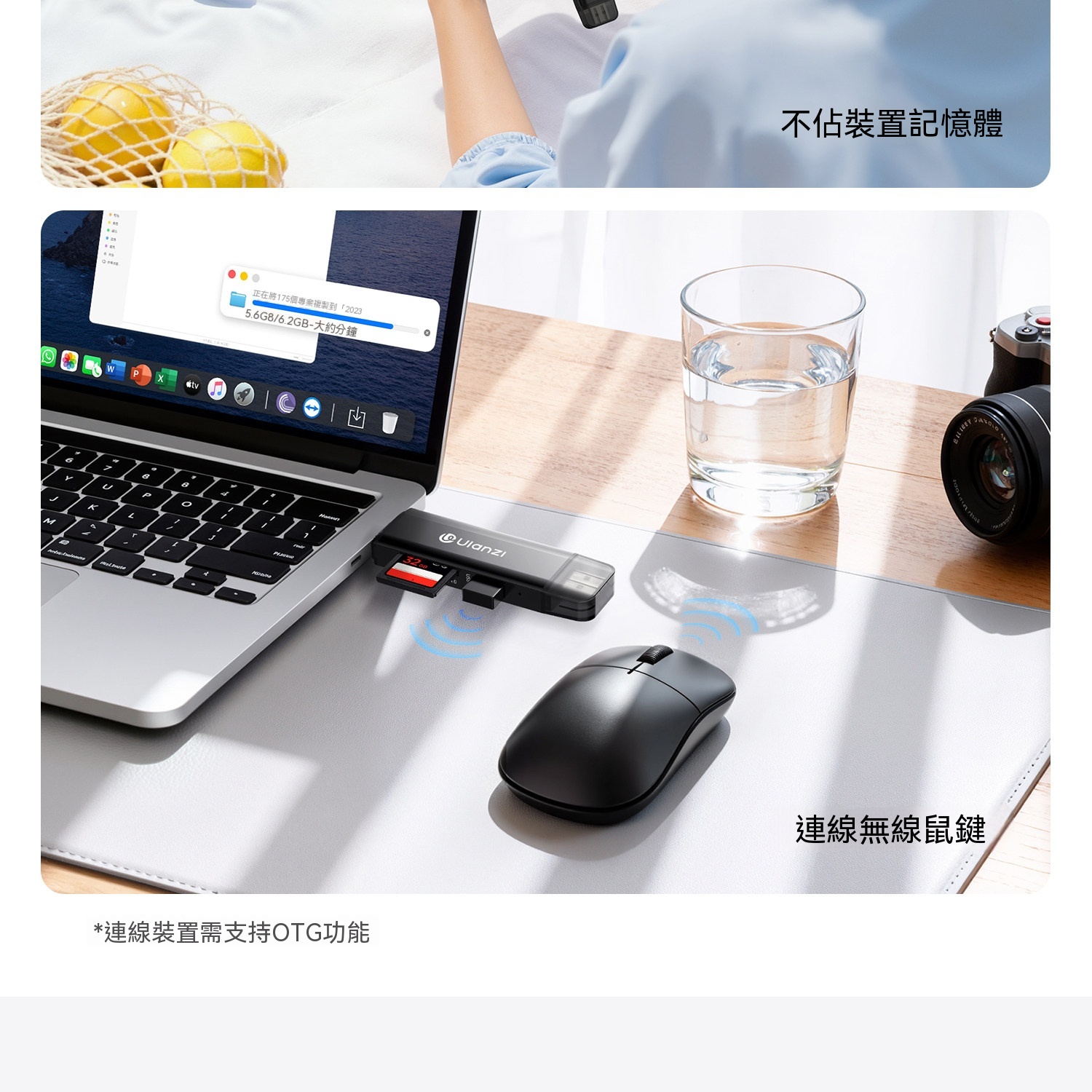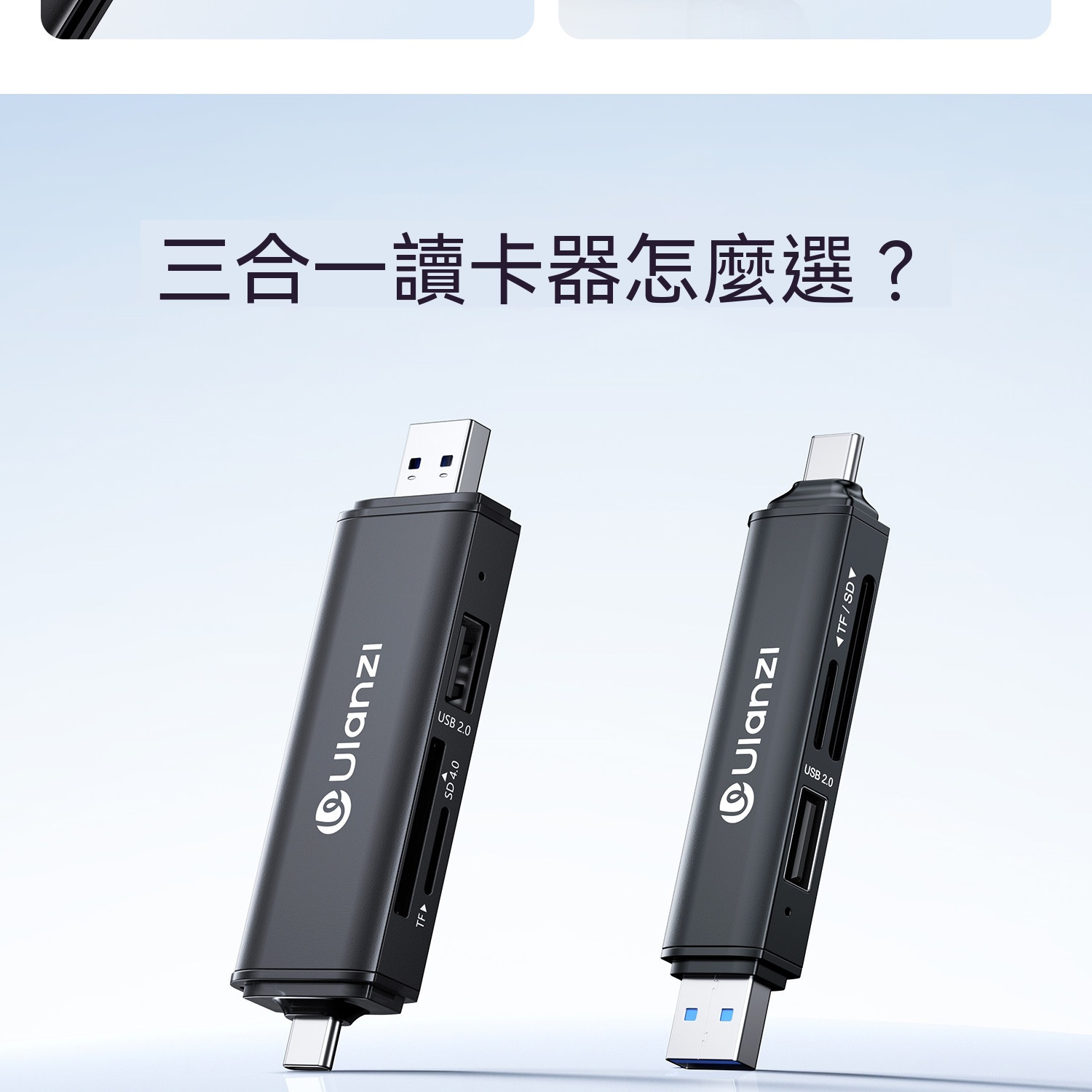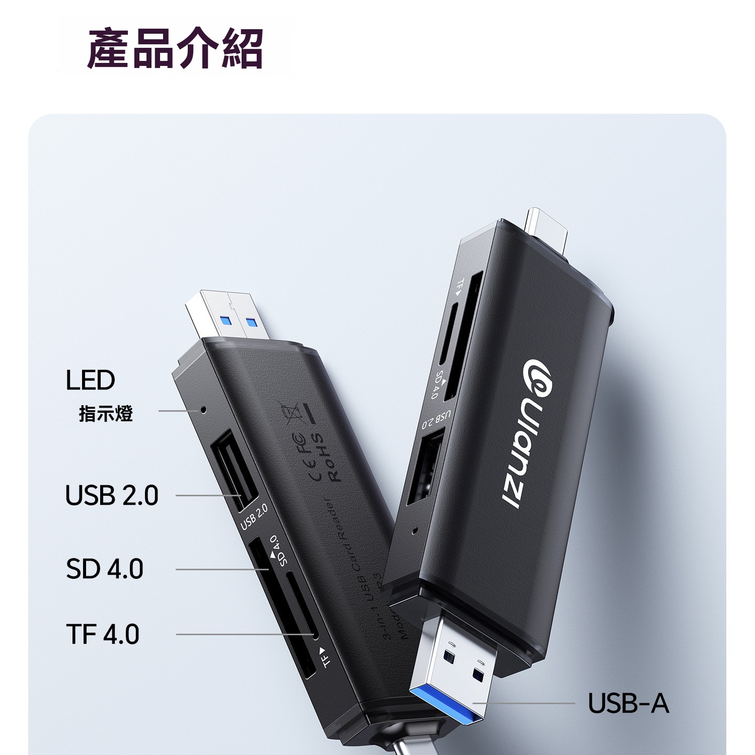 • 支援SD、TF、USB三口同讀,即插即用免驅動